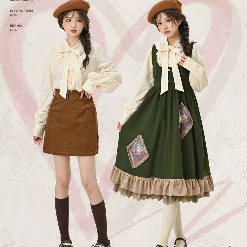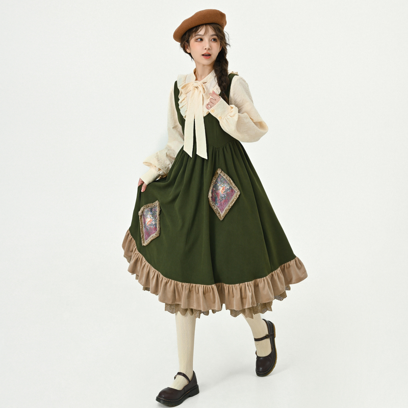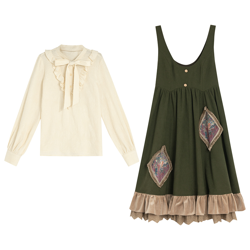 森女部落原创连衣裙秋冬法式 长裙气质轻lo森系氛围感叠穿背带裙女