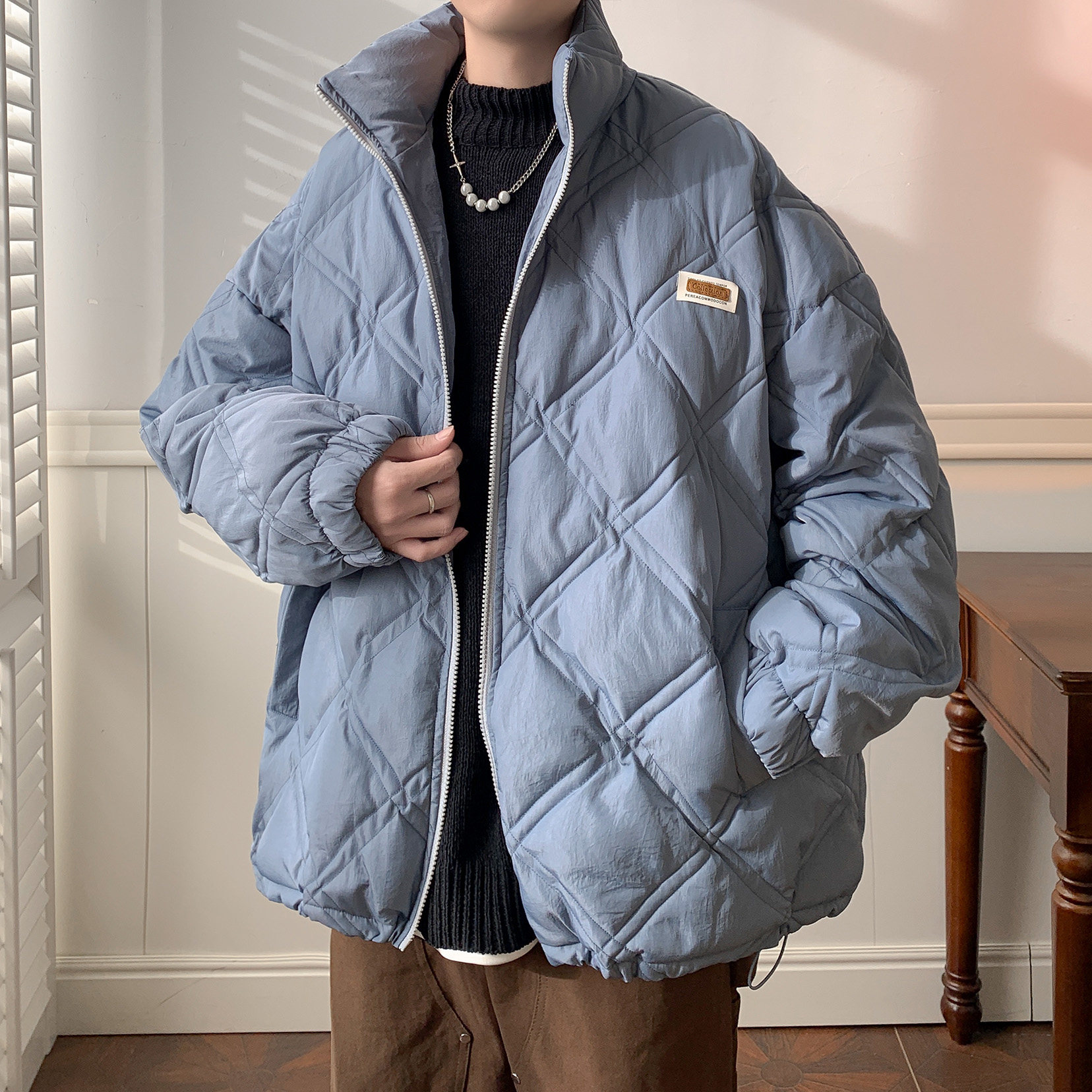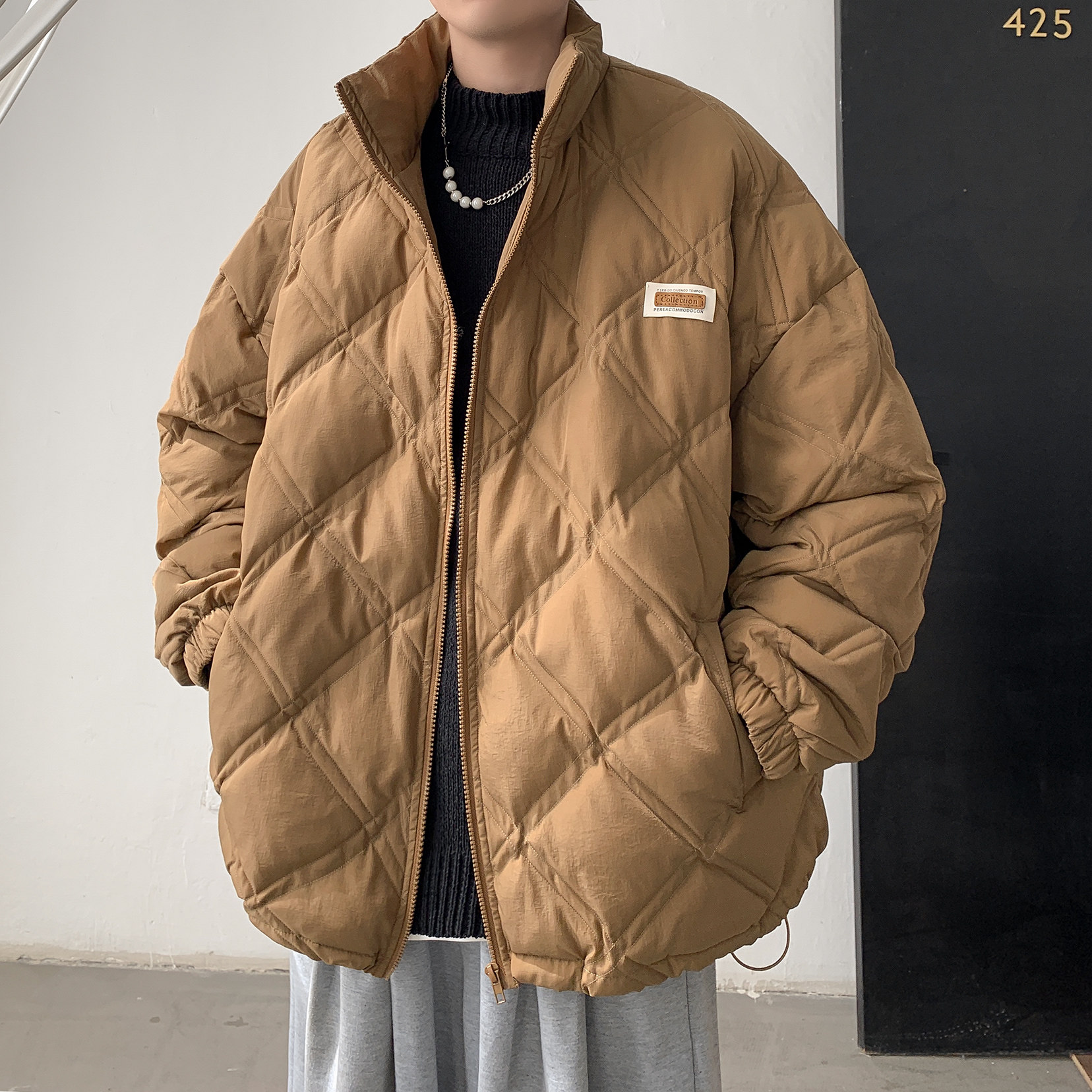 高级感外套 oversize潮牌日系棉衣棉袄子冬装 菱形羽绒棉服男款 春季