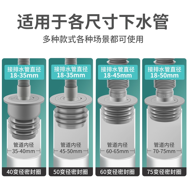 下水管防返臭神器下水道密封圈洗手盆排水管道防溢水密封塞子通用