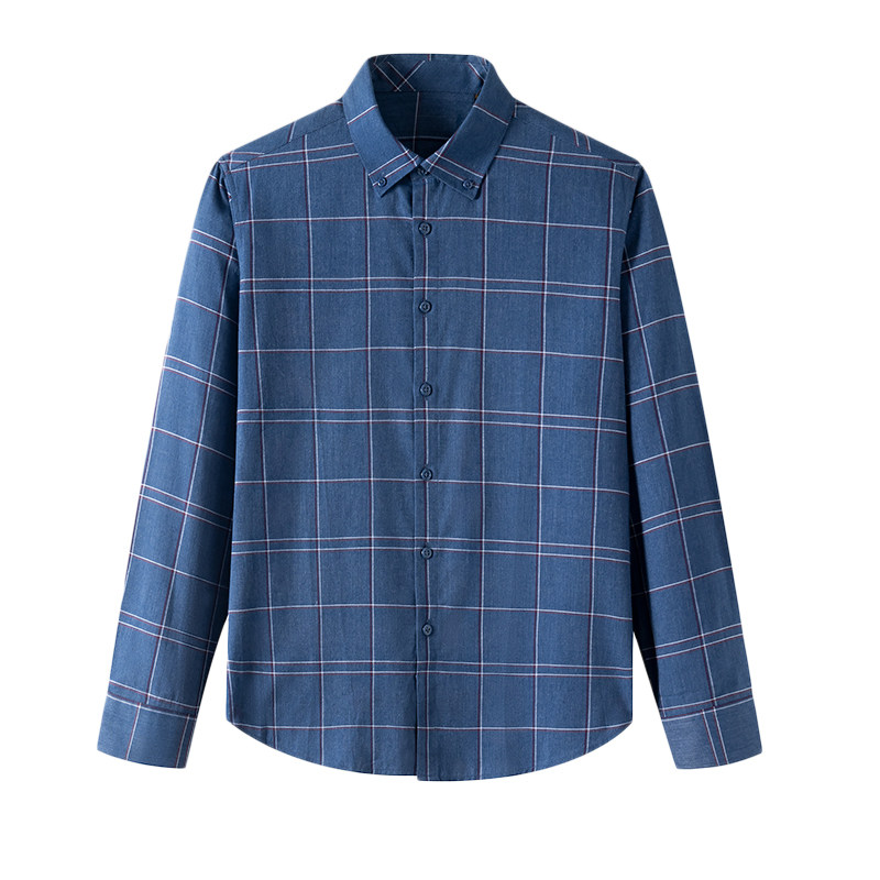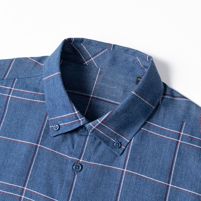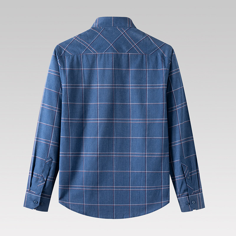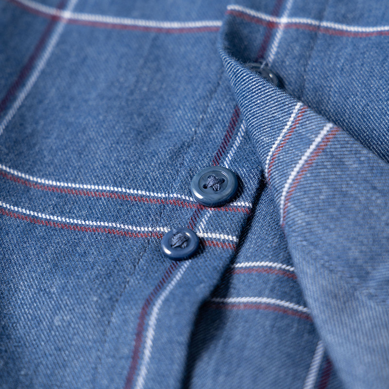 双色水洗磨毛长袖 几立 牛仔衬衫 夕阳倒映在蓝色天际