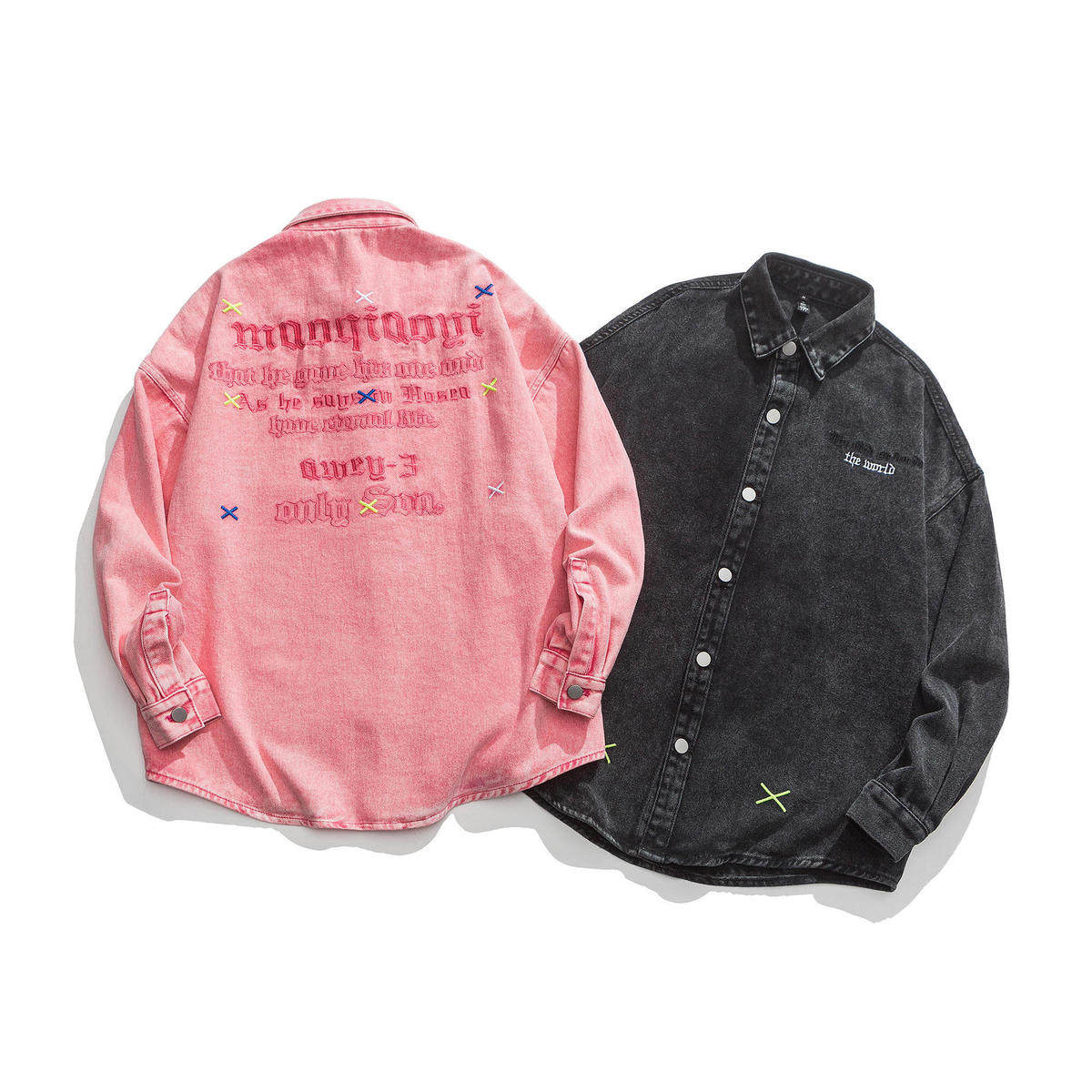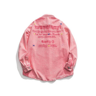 春秋男刺绣翻领水洗牛仔夹克港风复古宽松休闲个性 潮流情侣外套