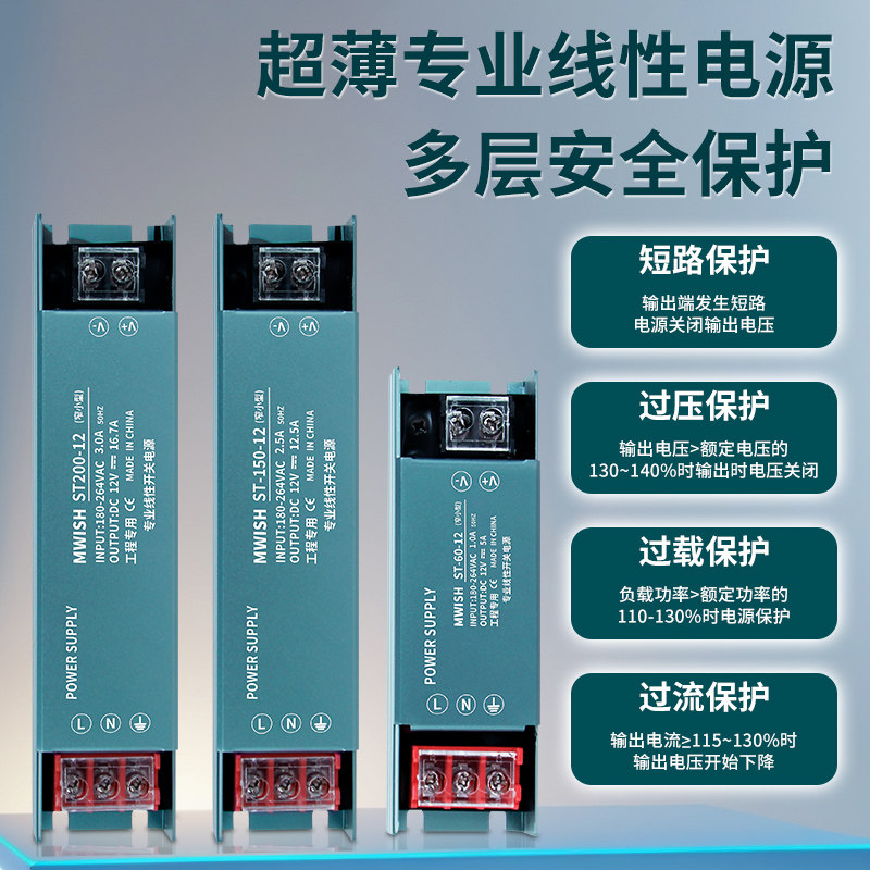 明伟超薄黑金刚灯带变压器220V转12V24V低压直流线条灯条灯箱电源