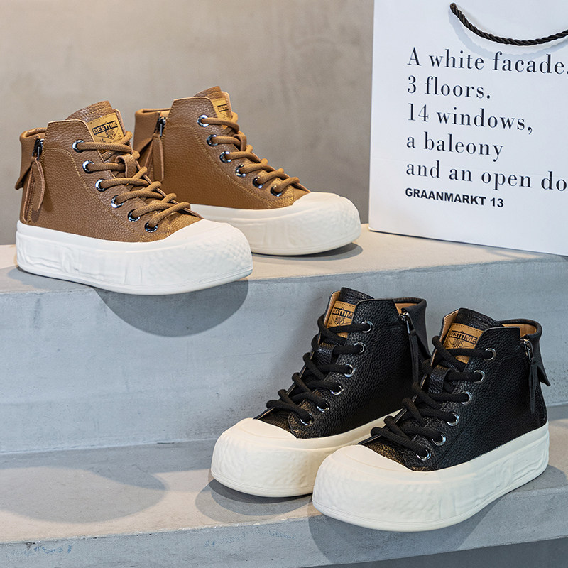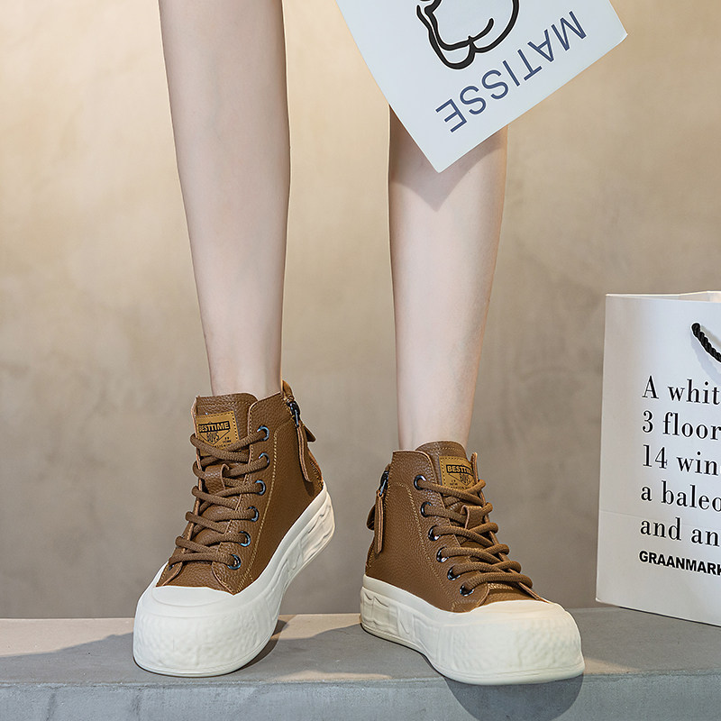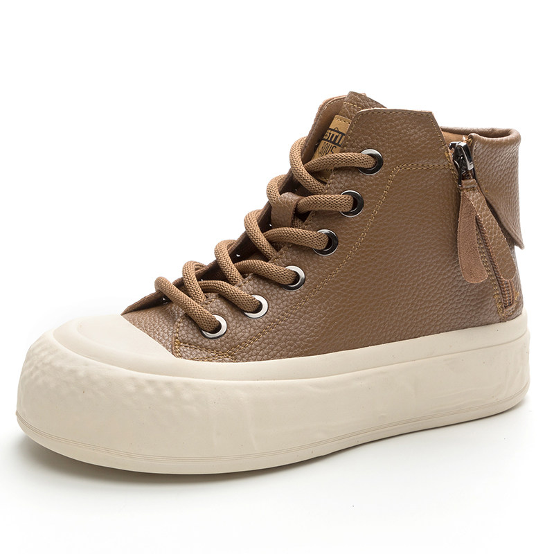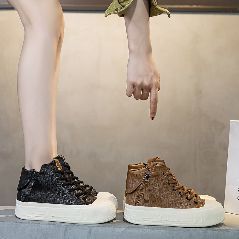 女2026年春秋新款 41到43高帮鞋 厚底复古短靴潮42 休闲女鞋 真皮大码