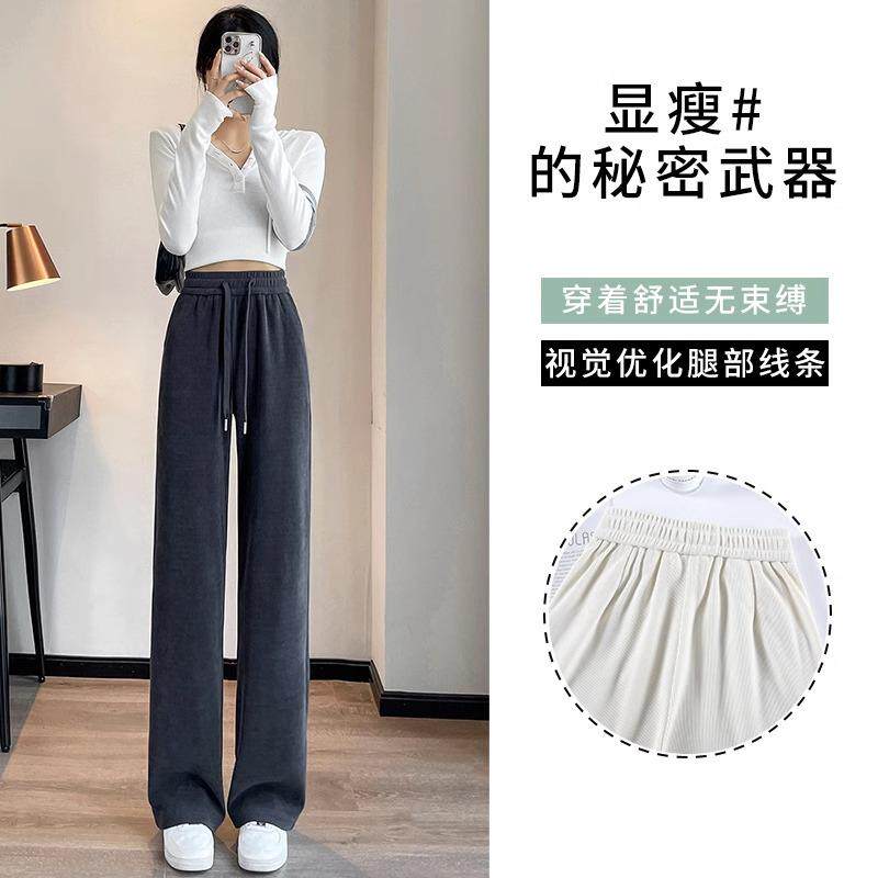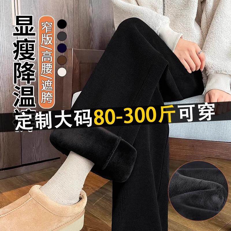 子 女秋冬加绒高腰遮垮显瘦灯芯绒裤 胖mm300斤特大码 雪尼尔阔腿裤