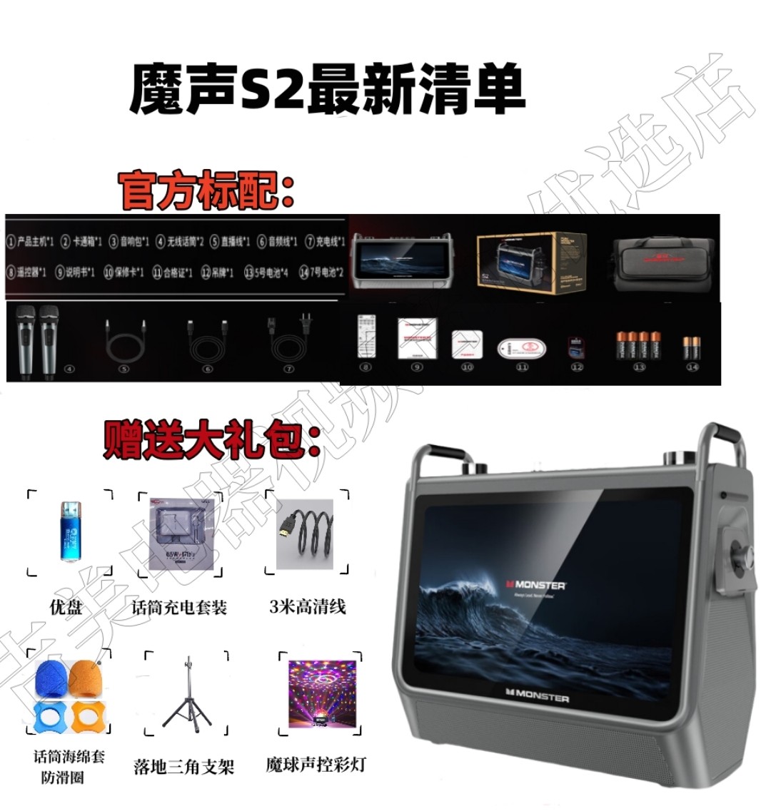 原装 智能网络K歌音响语音点歌户外家庭KTV Monster魔声S2pro升级版