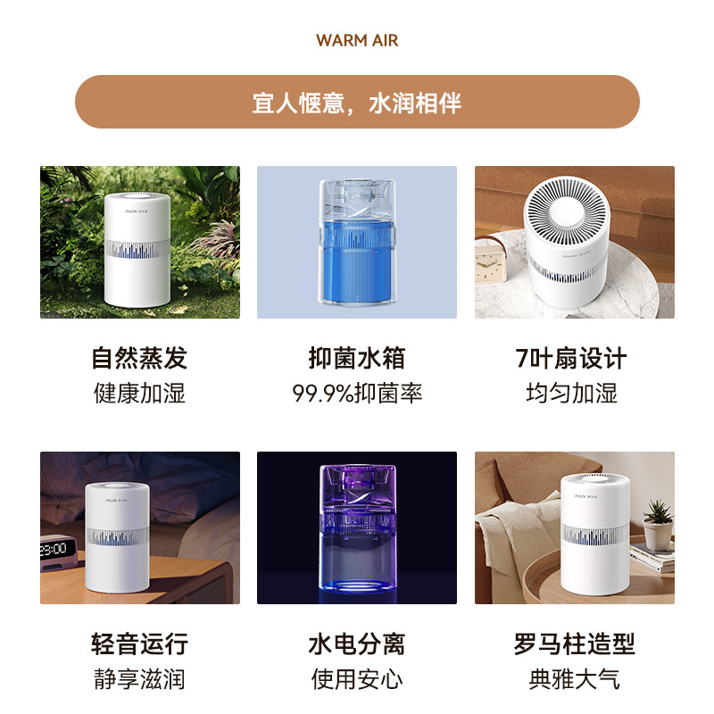 奥克斯无雾透明加湿器家用母婴保湿 器卧室孕妇婴儿补水抑菌器