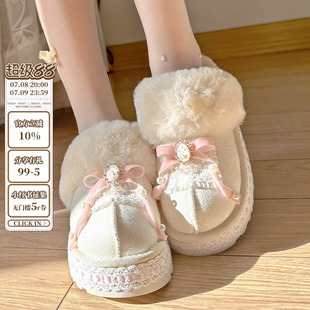 雪境约定PINKYO毛毛拖鞋 包头甜美可爱外穿绒底棉拖 女2024秋冬新款