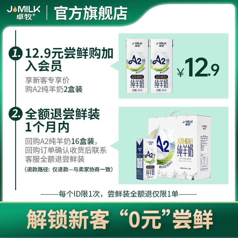 牧羊人山羊奶A2β酪蛋白羊奶儿童成人早餐羊奶脱膻200ml 2盒试喝