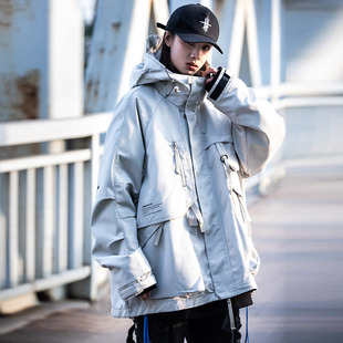 裤 CulturE小众复古做旧牛仔套装 夹克外套废土重磅拉链大口袋工装