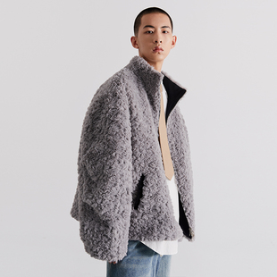 V37高街复古氛围感加厚毛呢外套男冬季 撞色格纹连帽保暖棉衣 美式