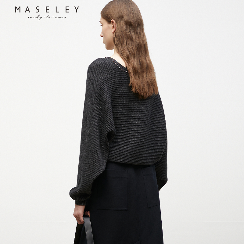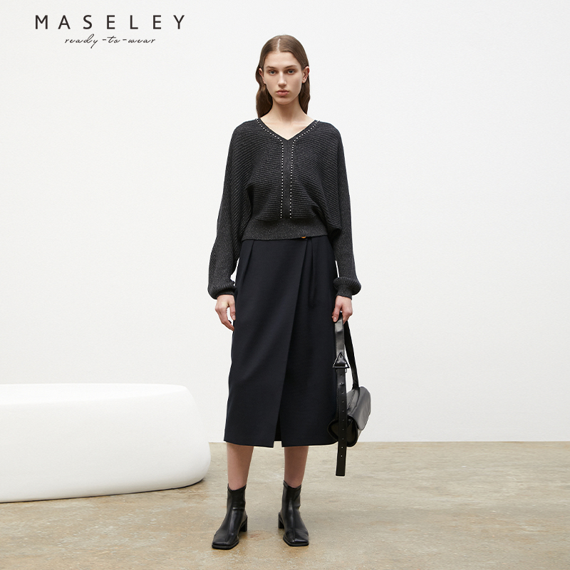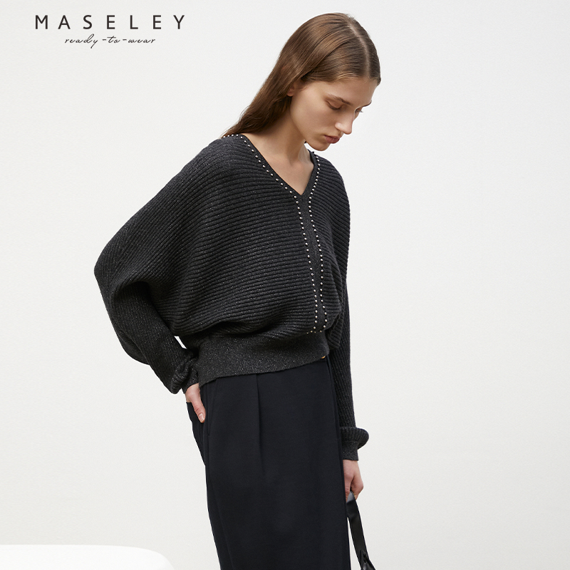 新款 冬季 加厚宽松洋气别致上衣女 玛塞莉V领套头毛衫 Maseley