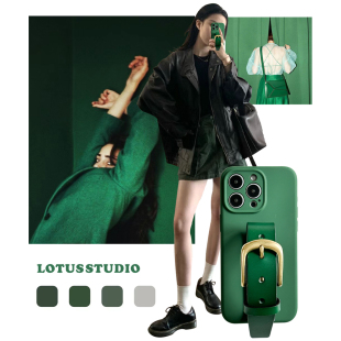 15系列原创设计保护套小众ins风手机保护壳 铜扣腕带手机壳精孔苹果16 高级复古绿iphone17promax经典 皮带经典