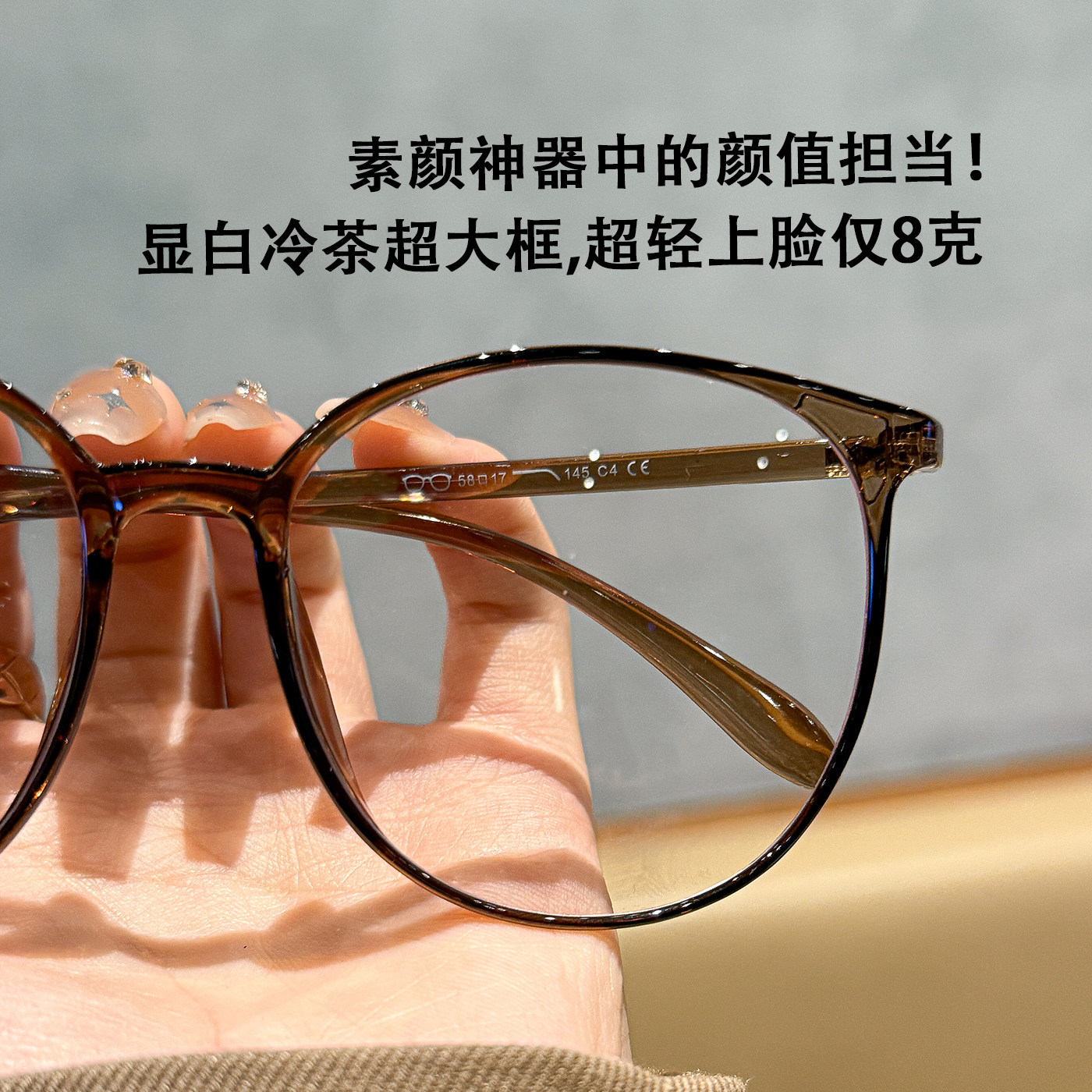 轻盈超大框冷茶色眼镜近视可配度数早八素颜神器大脸专属眼睛架男