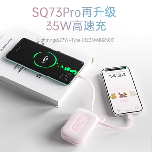 自带线20000毫安大容量35W超级快充移动电源超迷你超薄新款 WOPOW沃品充电宝小巧便携式 小彩蛋M 国家3C认证