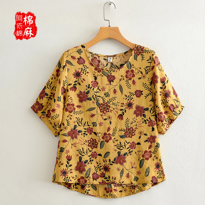 棉麻短袖 短款 t恤2025新款 小衫 透气舒服薄上衣 妈妈女士灯笼袖 夏装