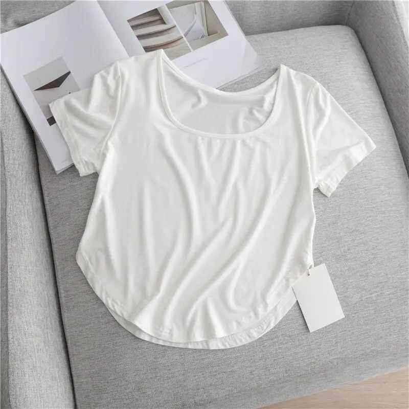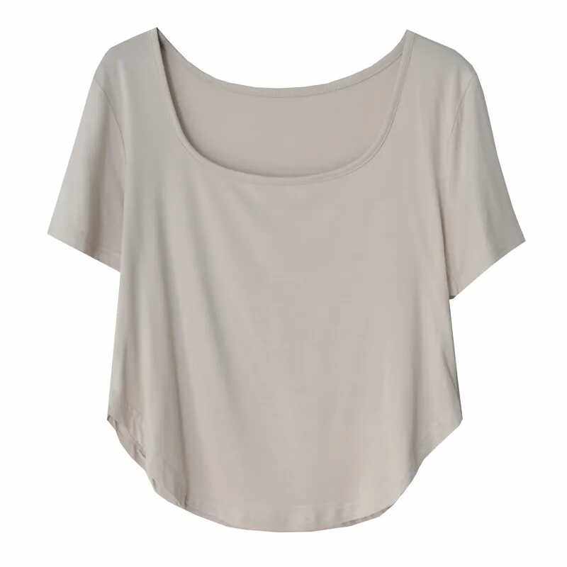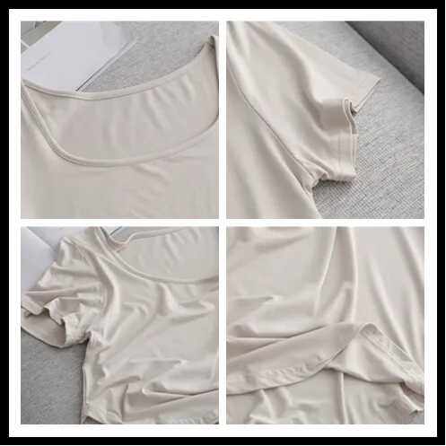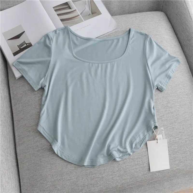 露锁骨垂感上衣ins 纯色修身 超软糯方领莫代尔短袖 T恤女夏2025新款