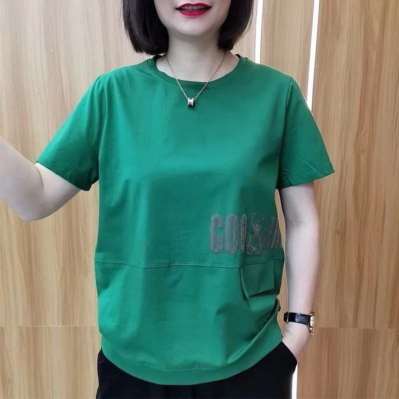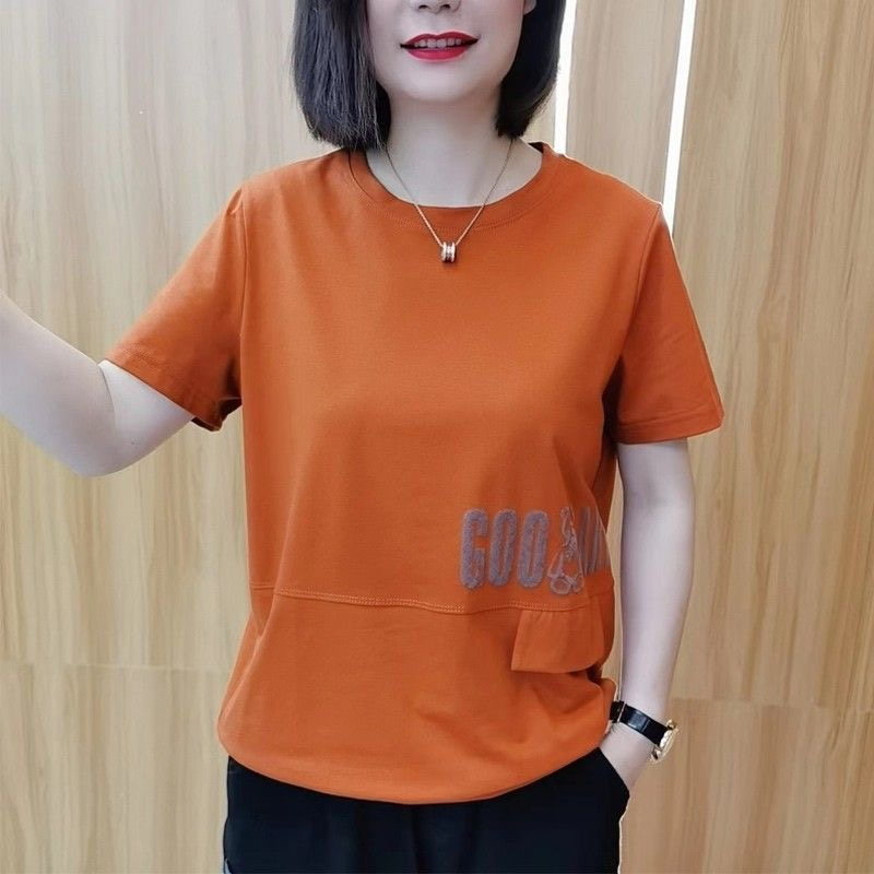 宽松大码 妈妈夏装 中老年女装 t恤女2024新款 圆领减龄上衣 棉质短袖