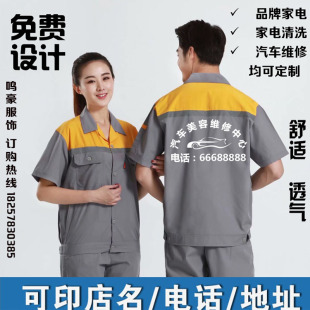 印logo 修夏短袖 格空调售后工作服电器维修安装 清洗车间厂服汽修装
