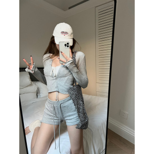 双色开衫 短裤 套装 Xinlei 长袖 时髦插班生 女春夏时尚 Lin