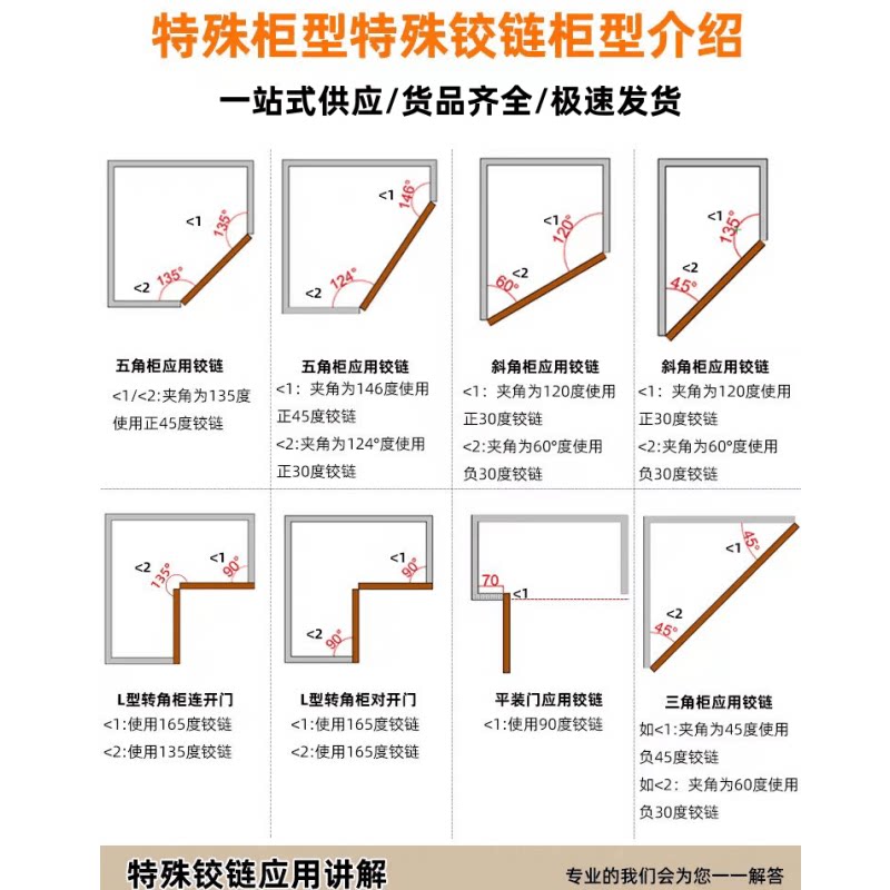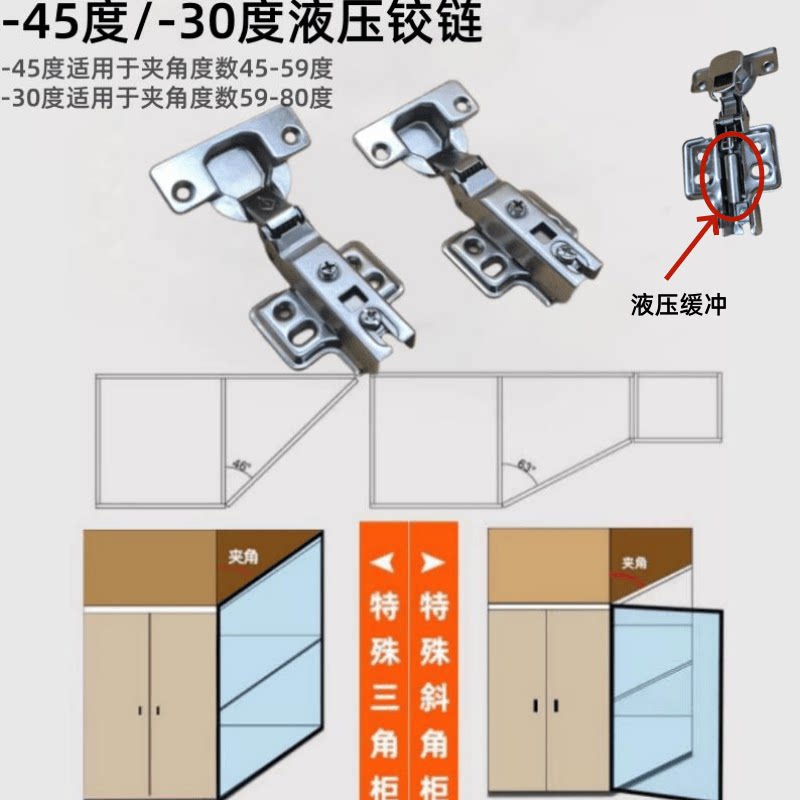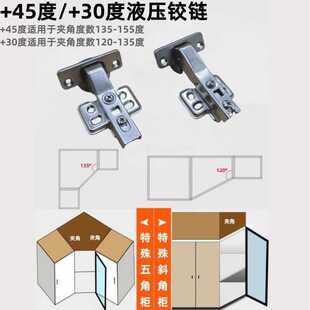 特殊角度液压阻尼铰链木门正负45度30度90度165度大角度异形合页