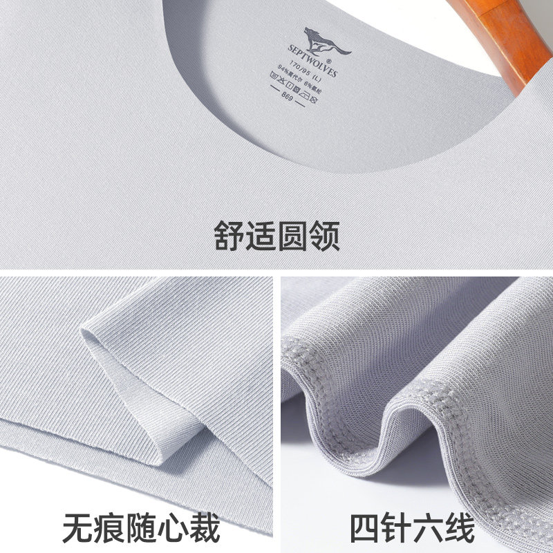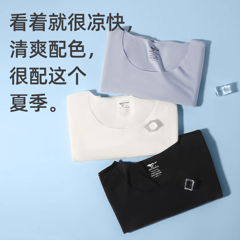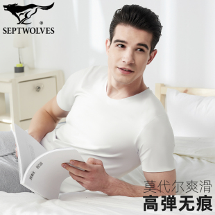 薄款 t恤冰丝无痕体恤高端商务纯色打底汗衫 短袖 七匹狼莫代尔男士