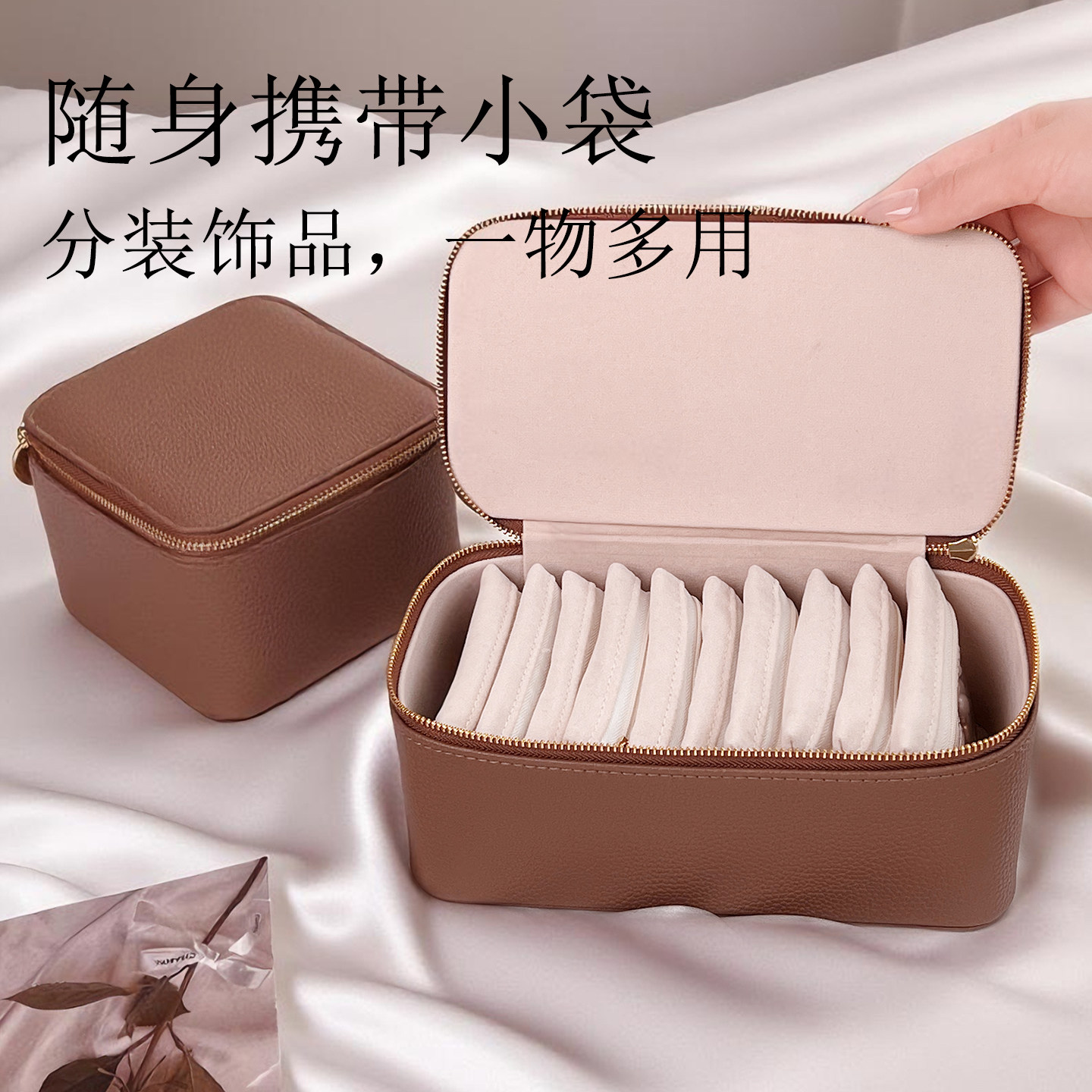 Tagi.首饰枕头提花首饰盒面料大容量复古小号双层收纳盒