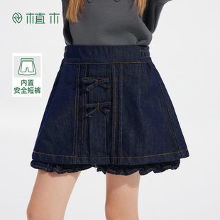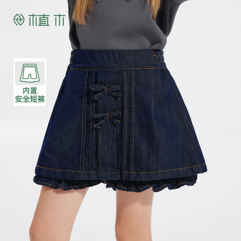 儿童牛仔半裙 中大童甜酷假两件裙裤 植木童装 女童裙子2025秋冬新款