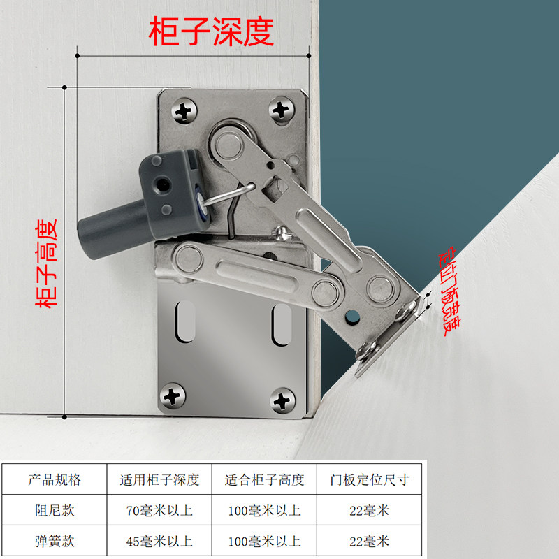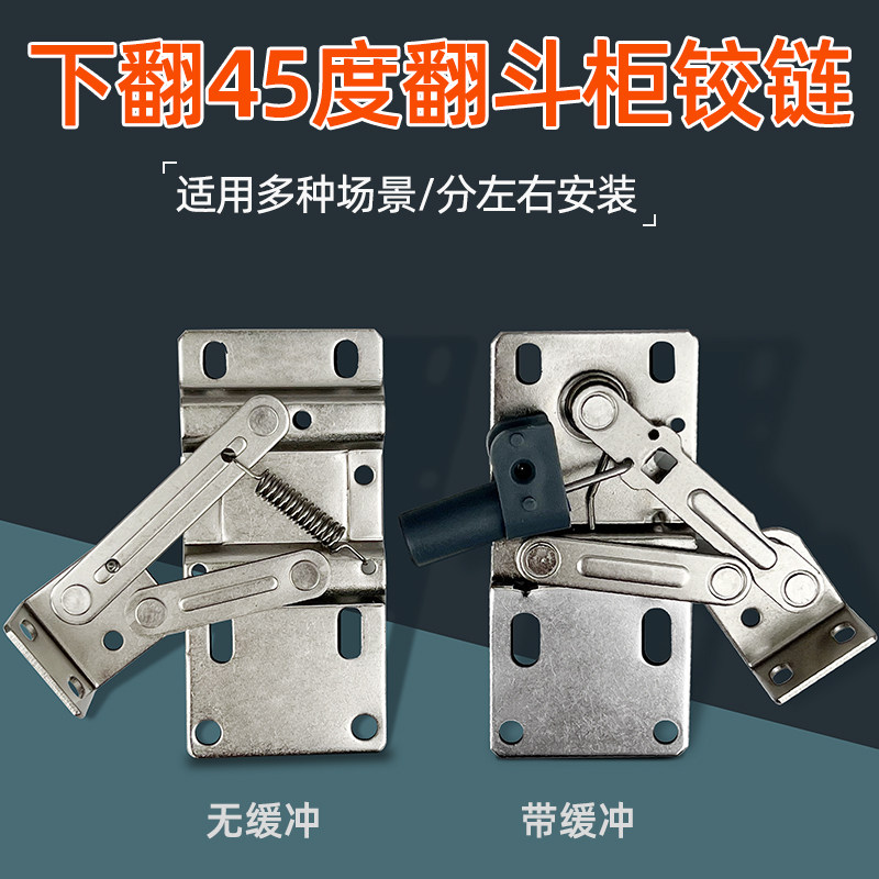 下翻45度缓冲铰链水槽柜鞋 柜浴室柜翻斗柜门合页45度下翻拉杆配件