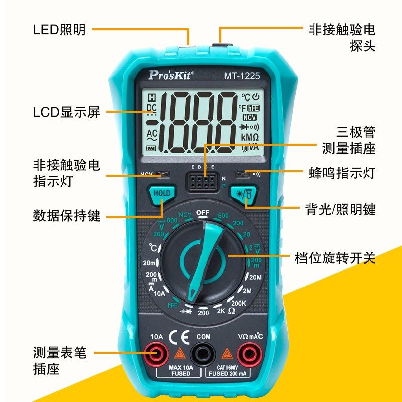 2数字万用表数显防烧电工万能表维修专用 宝工MT 1225多功能3