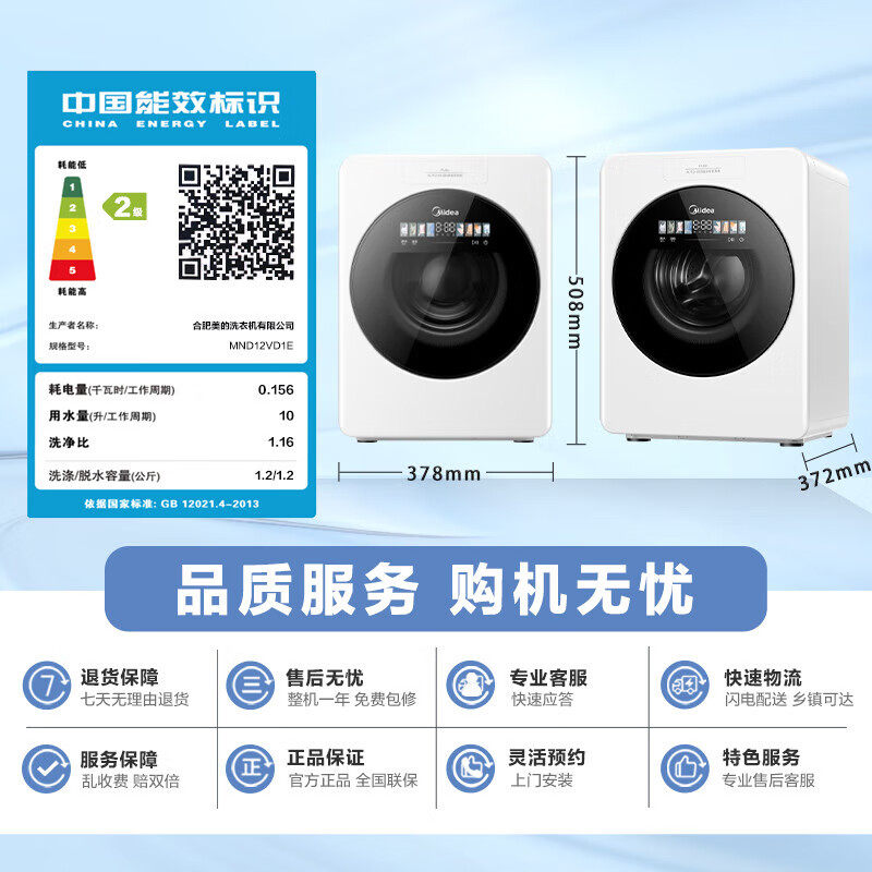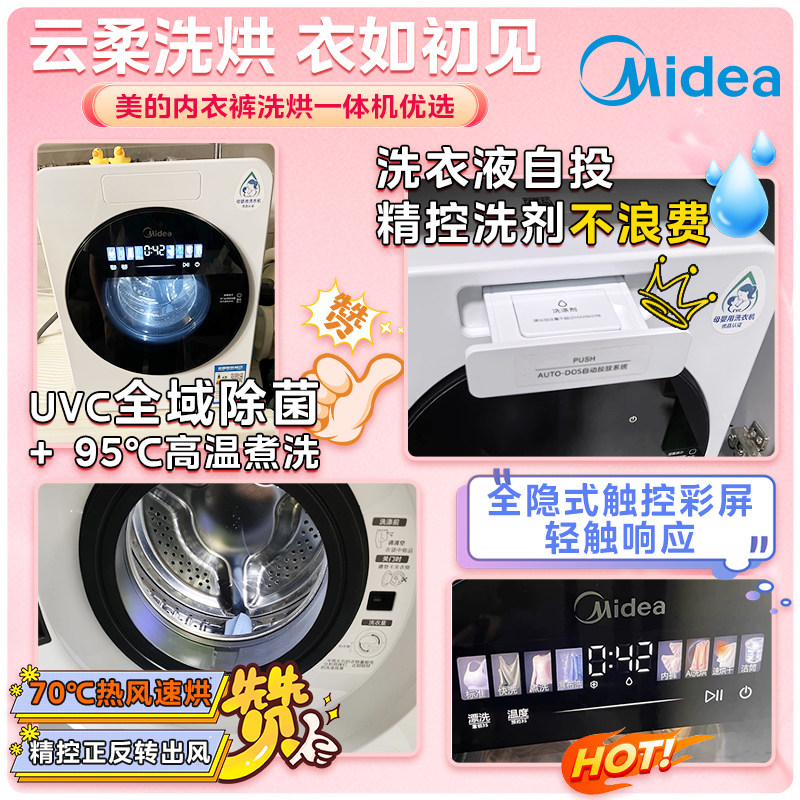 美 10kg滚筒洗衣机全自动家用纯平嵌精华洗除菌螨洗烘脱一体56T