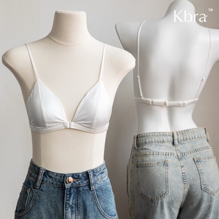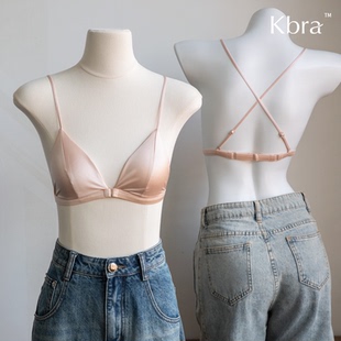 美背细肩带前扣文胸罩缎面 超薄款 Kbra珠光丝法式 三角杯内衣女夏季