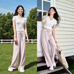 森马内衣女简约纯色短袖 显瘦V领打底温柔软糯内搭可外穿 上衣修身