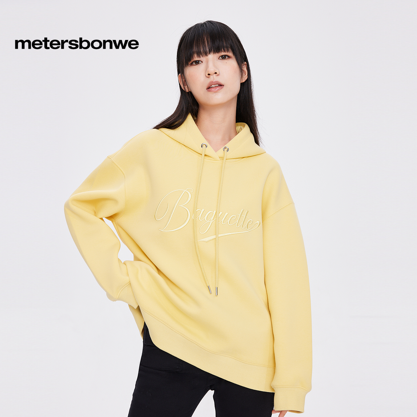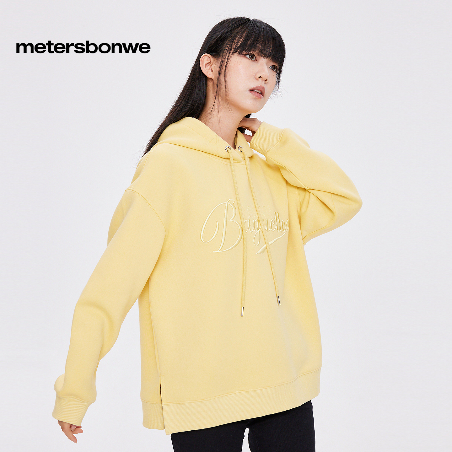 美特斯邦威卫衣女秋冬宽松简约连帽休闲百搭精致刺绣潮流复古外套