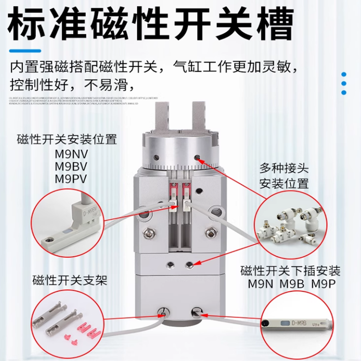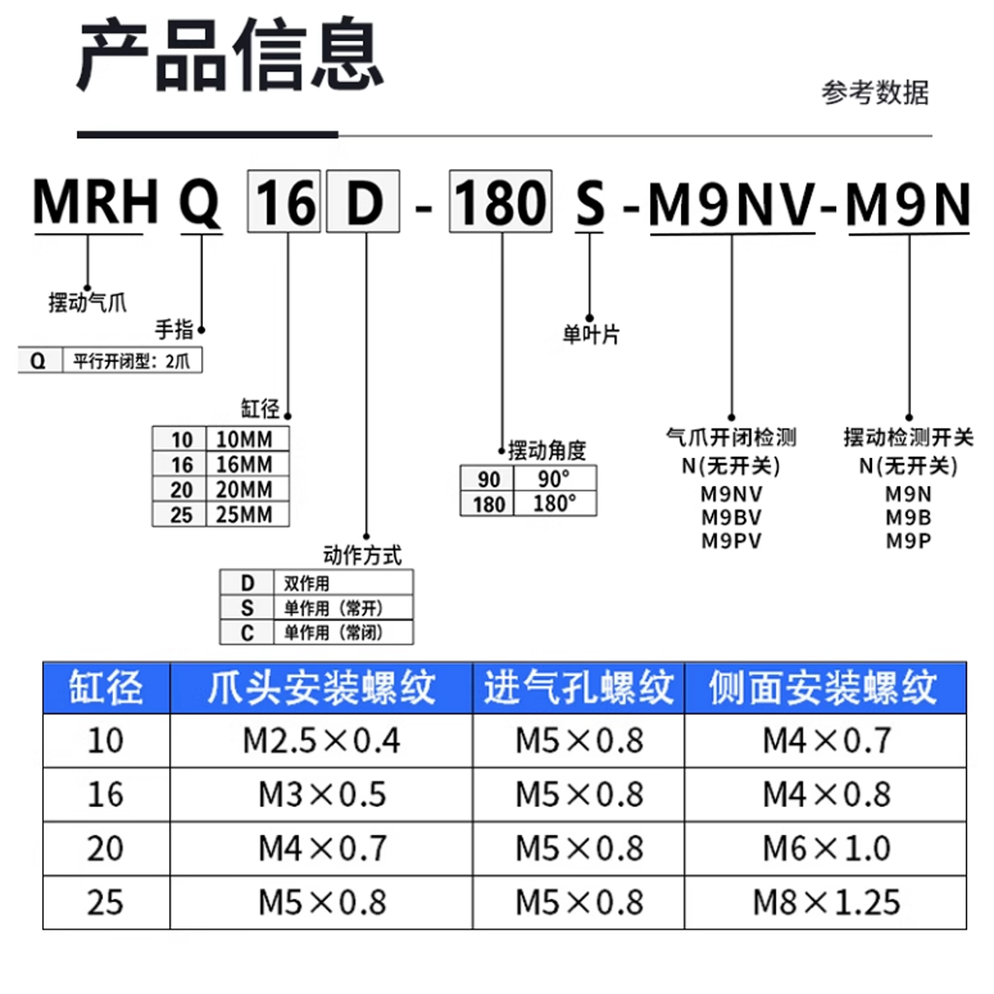 25D 90S 180S SMC旋转夹紧手指气缸MRHQ20D M9PV 10D M9B 16D