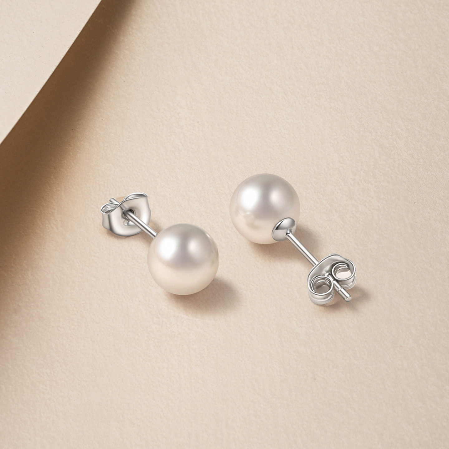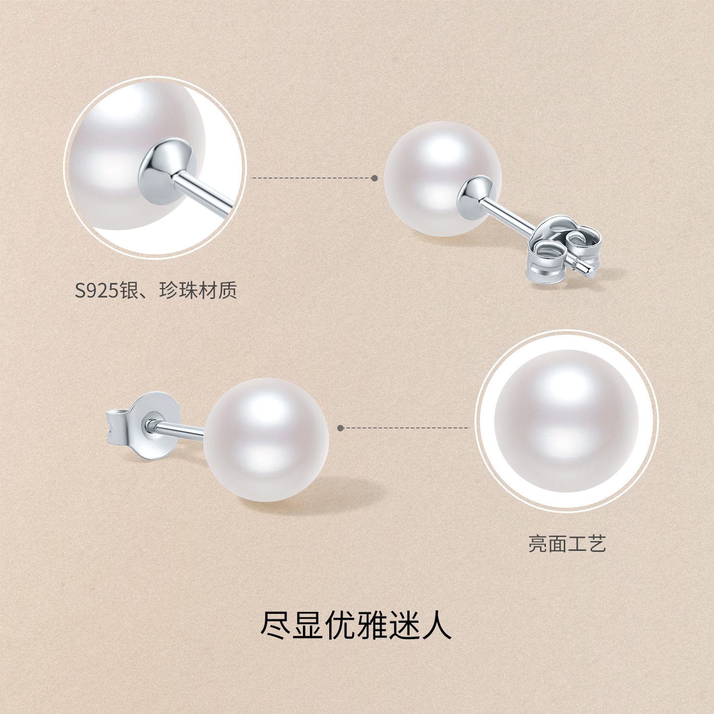京润珍珠 倾心百搭正圆淡水耳钉天然淡水珍珠耳饰生日礼物送闺蜜D