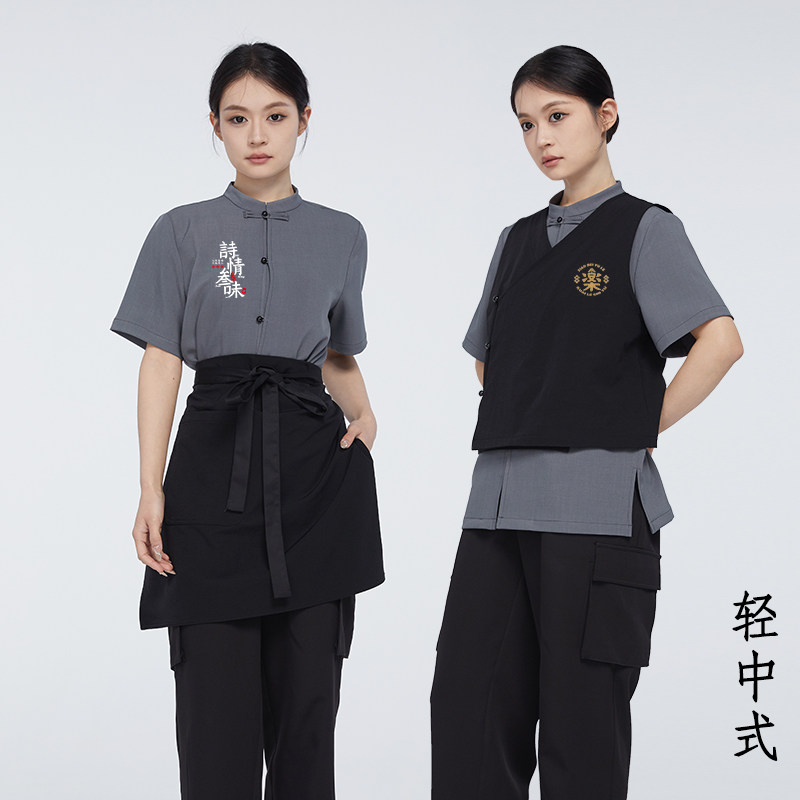 服务员工作服长袖 制服定制logo 多米来酒店餐饮饭店男女服务员工装