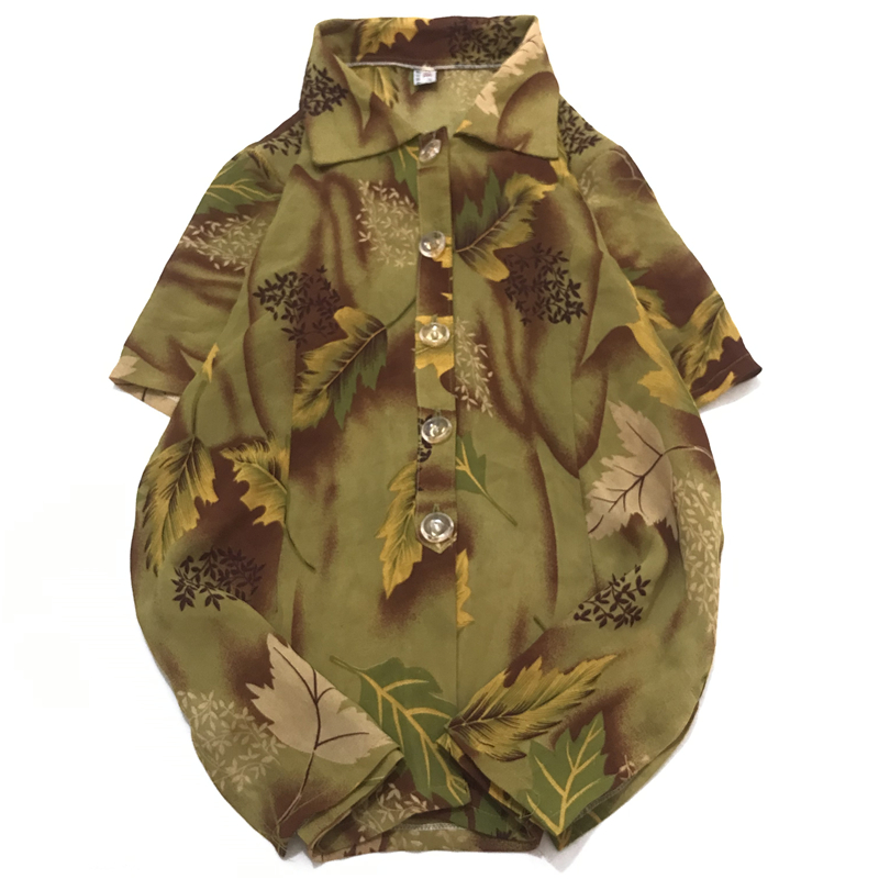 上衣女E95 复古夏威夷雪纺碎花宽松百搭短袖 vintage古着衬衫 夏季