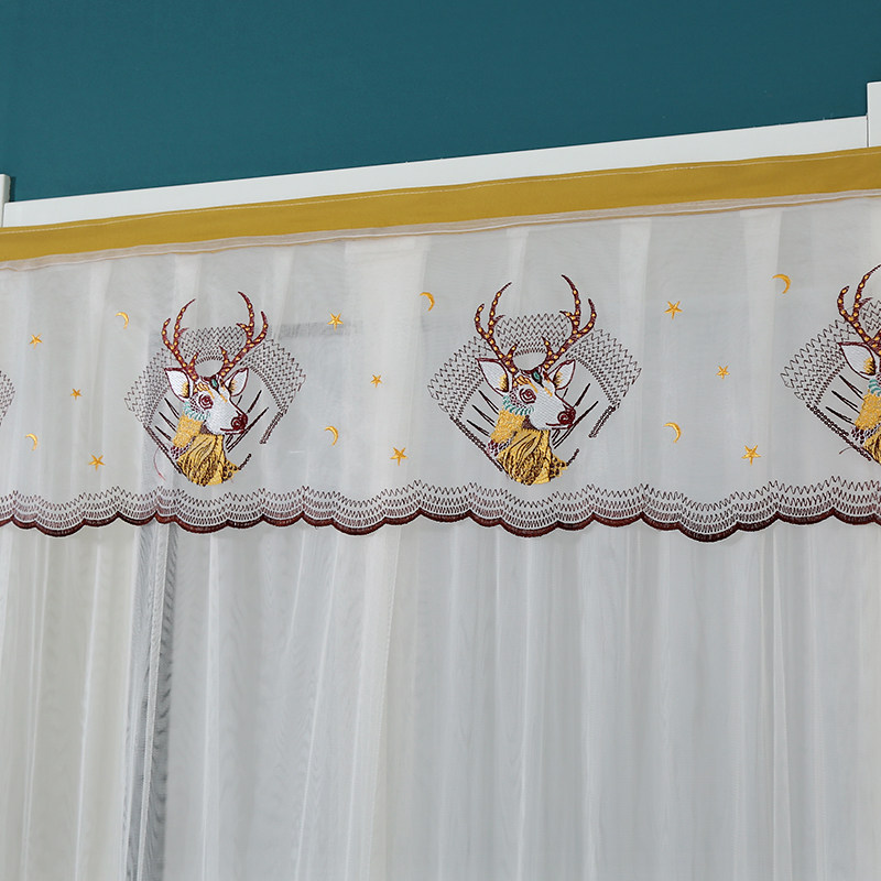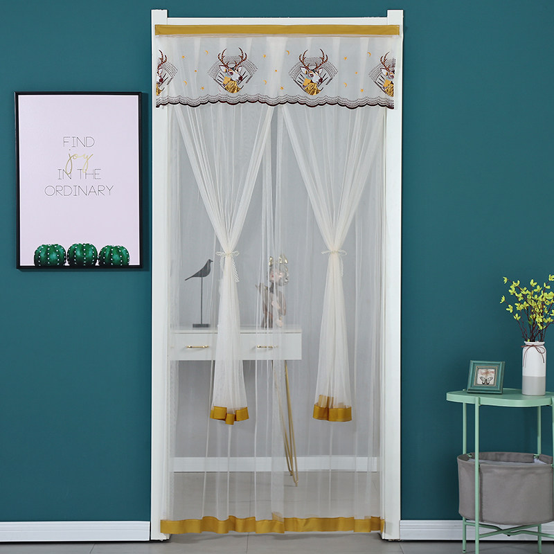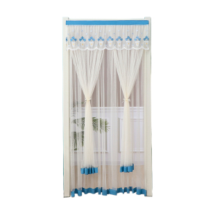 纱门帘自粘贴双层蕾丝帘子纱帘魔术贴自粘式 隔断帘伸缩杆夏天防蚊