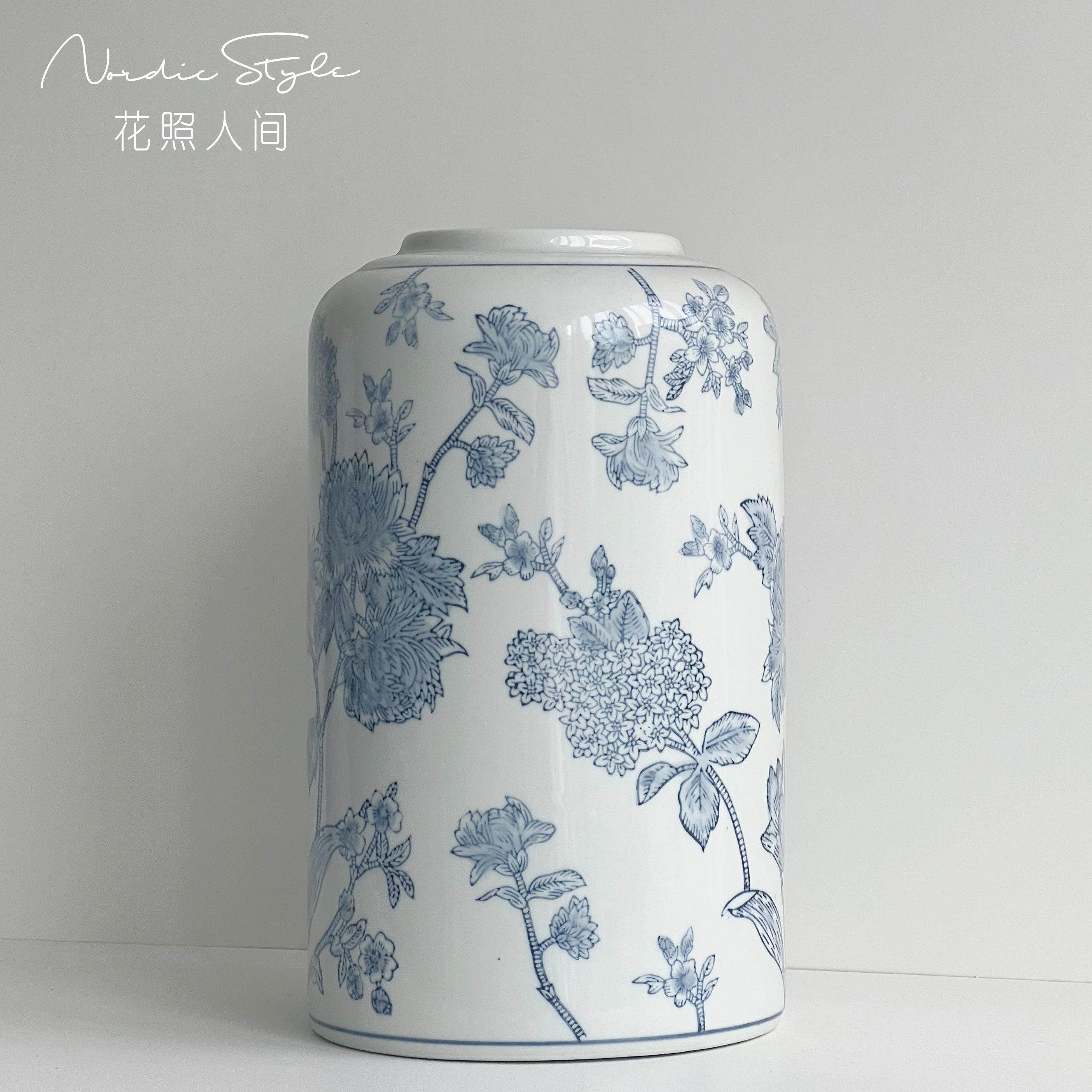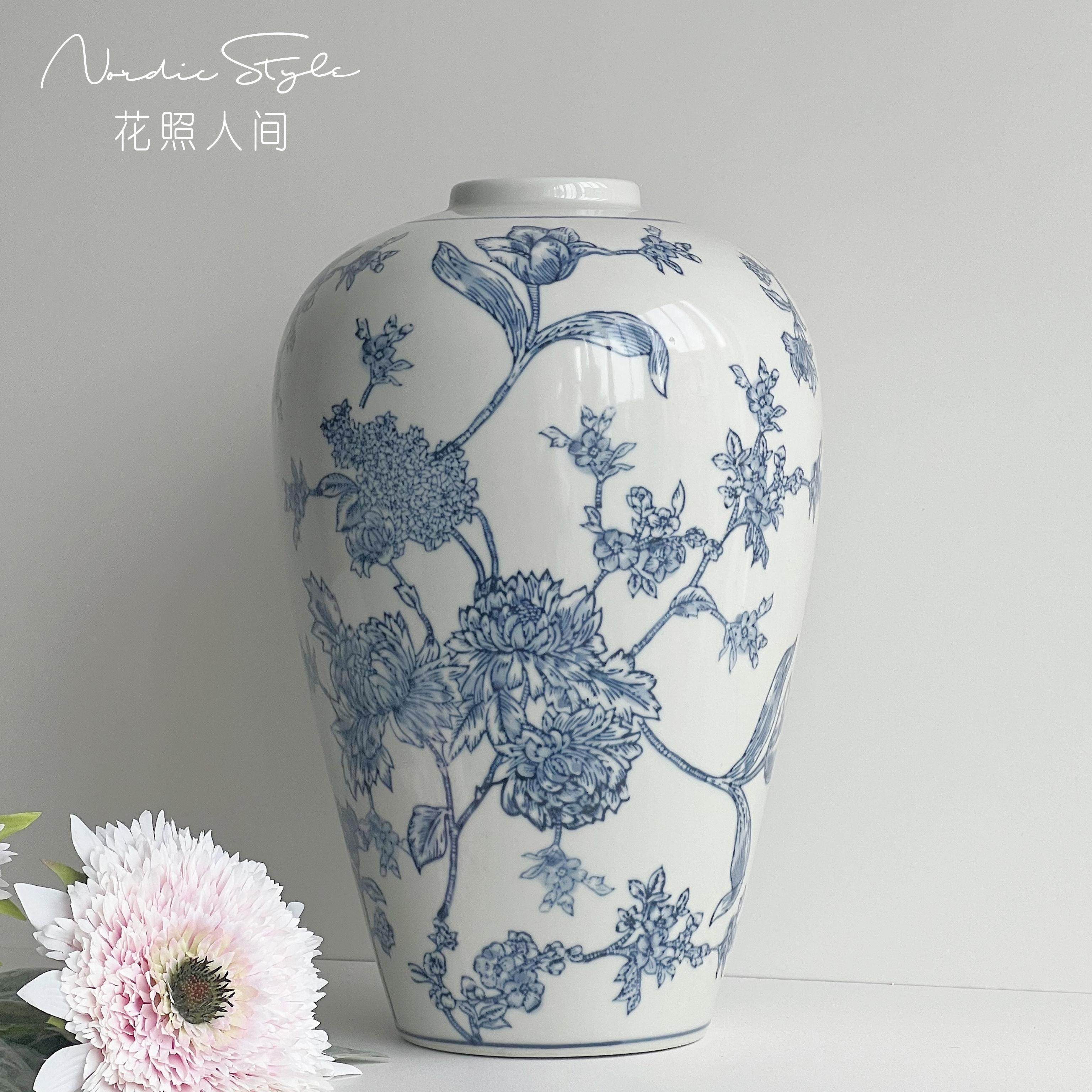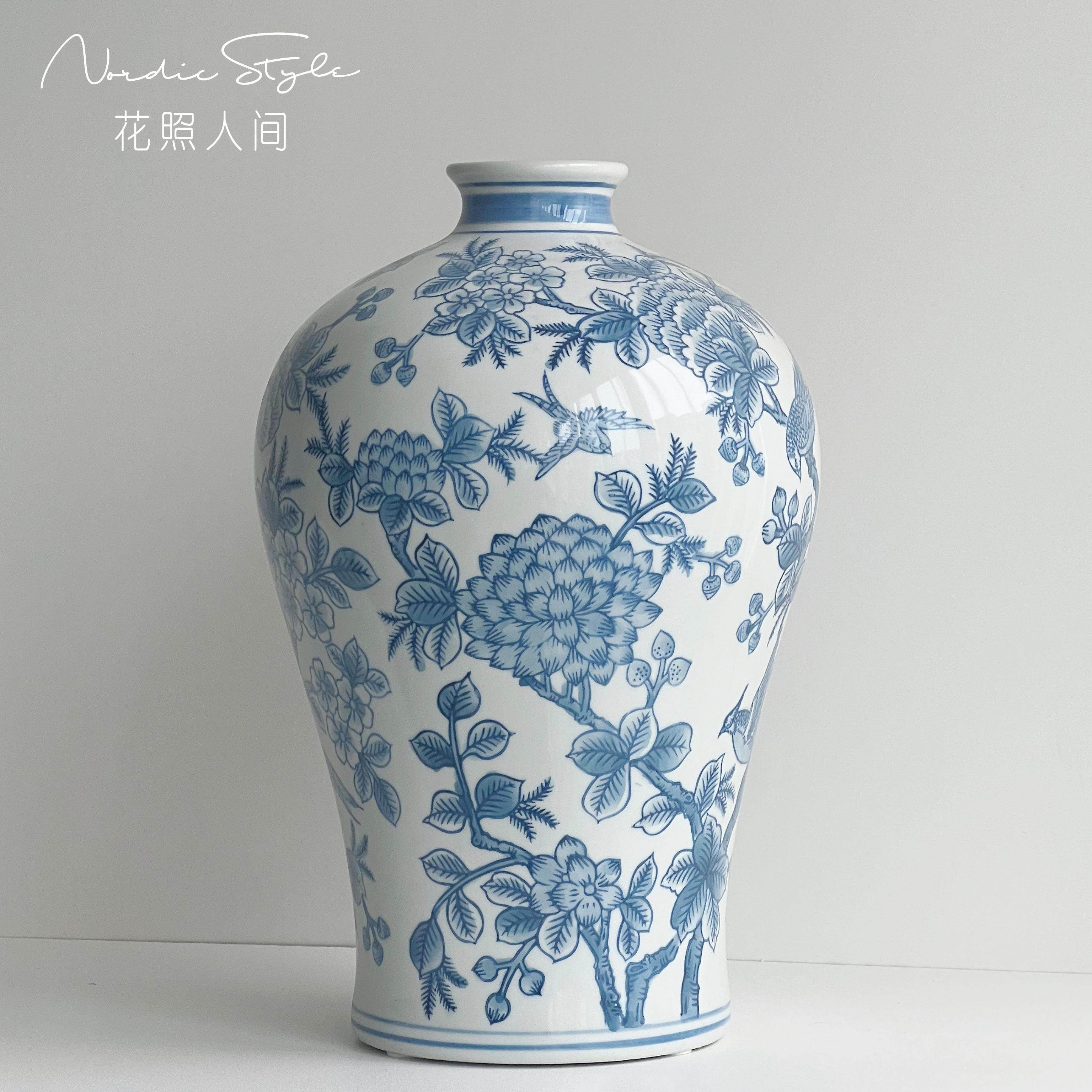 饰 梅瓶彩绘美人瓶萝卜瓶家居装 景德镇陶瓷花瓶 高品质青花瓷花器