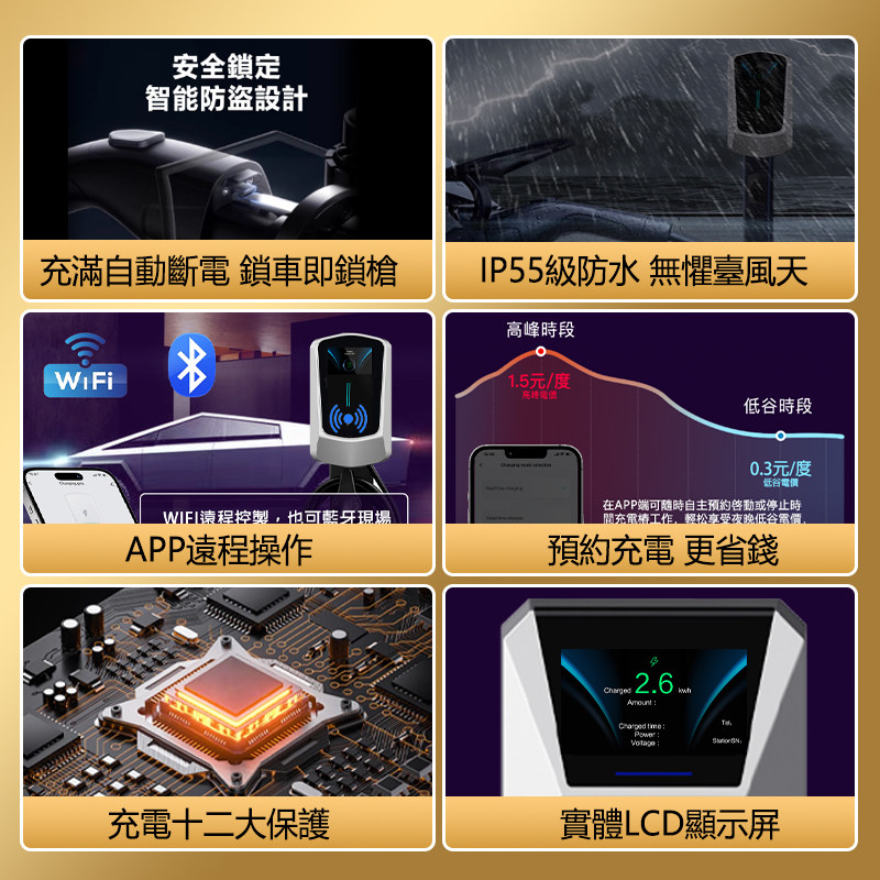 22kw支持涂鸦app 11kw 欧标type2独创指纹密码 解锁充电桩功率7kw