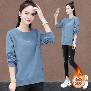 T恤长袖 大码 保暖上衣 女秋冬内搭加绒加厚修身 羊羔绒半高领打底衫
