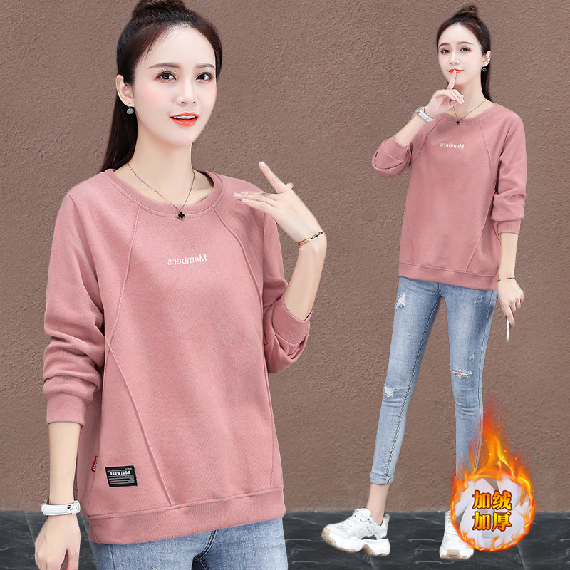 双面德绒半高领打底衫 胖妹妹200斤加绒加厚宽松内搭T恤 女秋冬大码