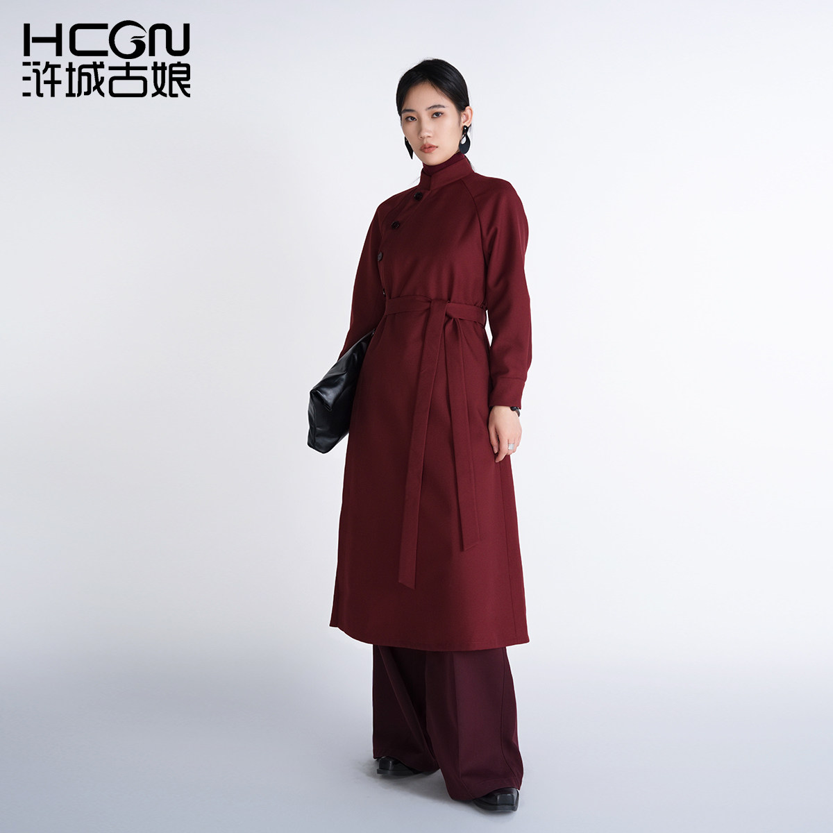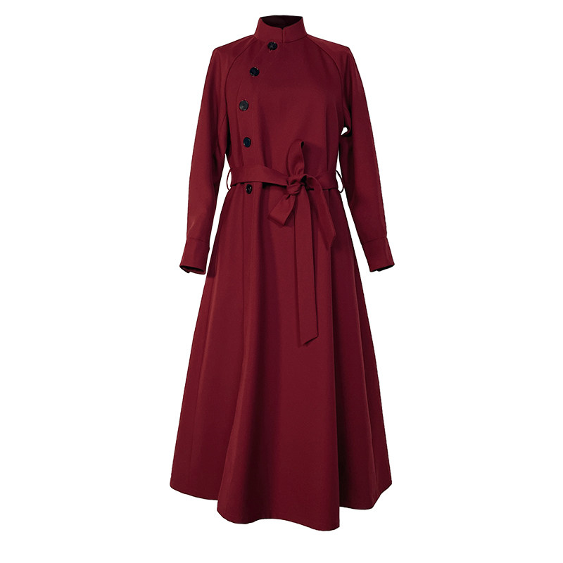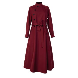 国风连衣裙女款 新中式 春秋 羊毛复古气质宽松红色长袖 浒城古娘新款