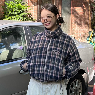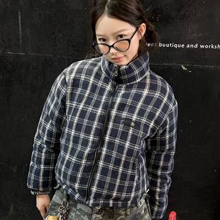 潮棉衣外套 标语刺绣双面格纹两穿加厚棉服女款 FORUYES官方店 冬季