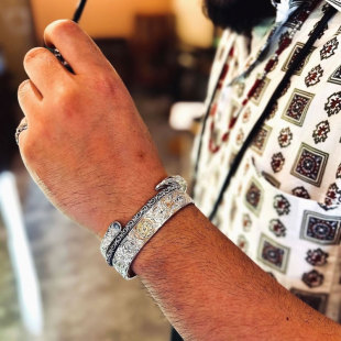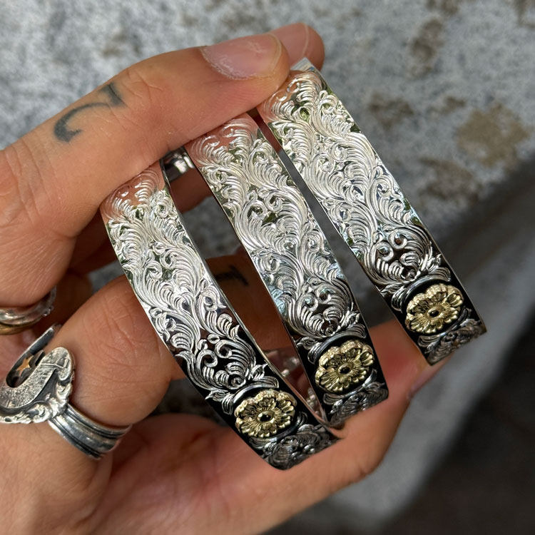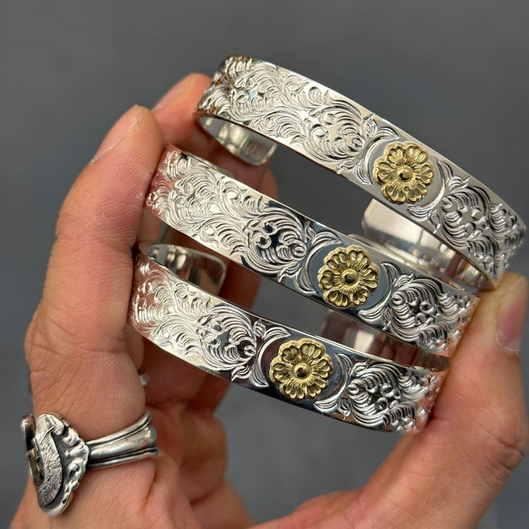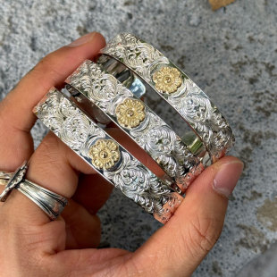 日本手打18K金蔷薇花双重唐草银手镯 新设计单品 Dear Blossom