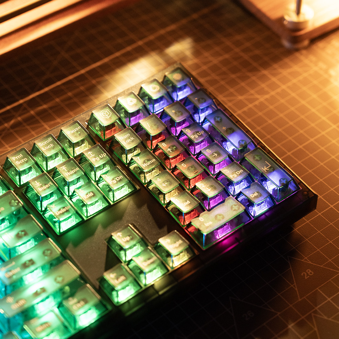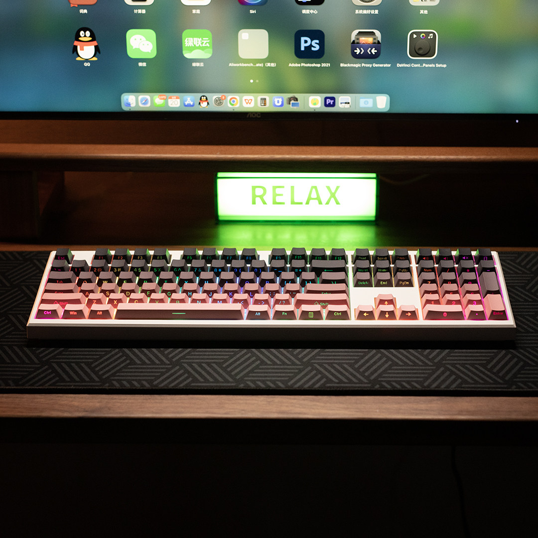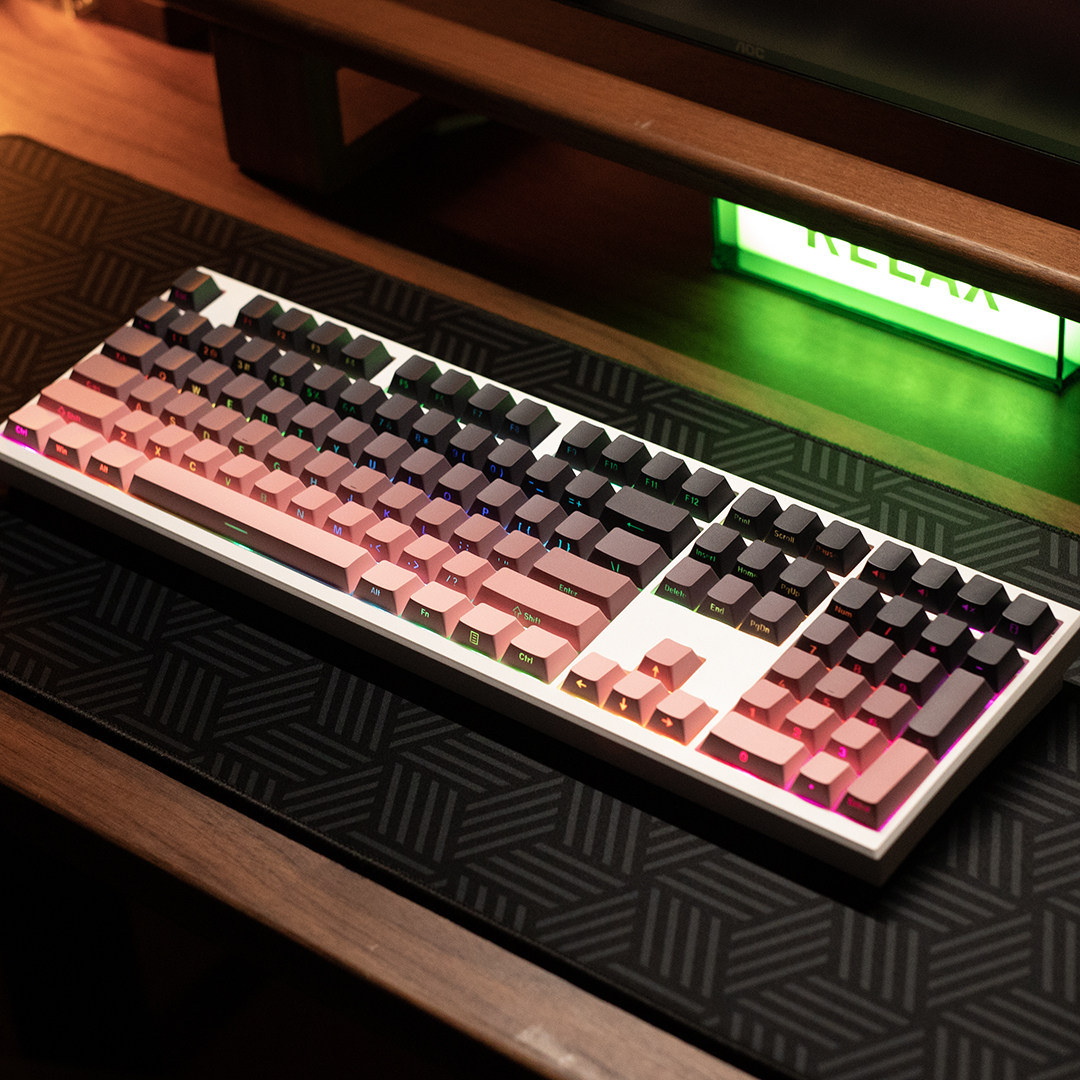 漫步猫Z108机械键盘渐变侧刻透光黑莓粉无线女生办公静音麻将音