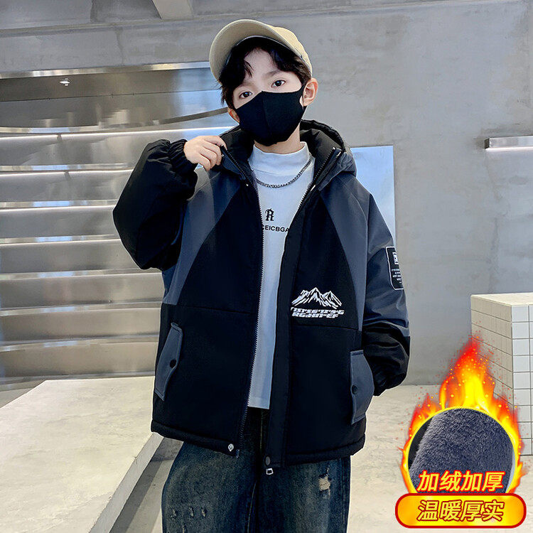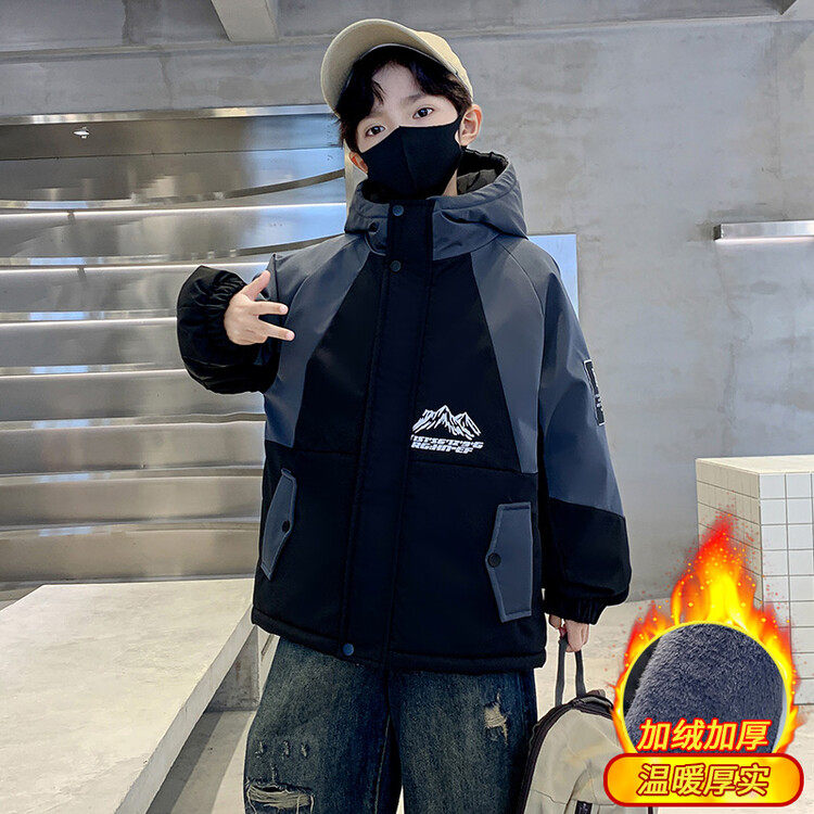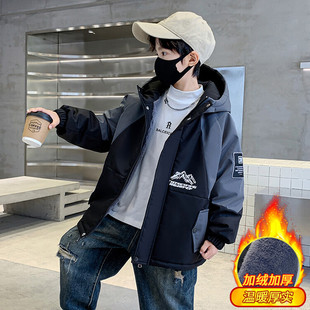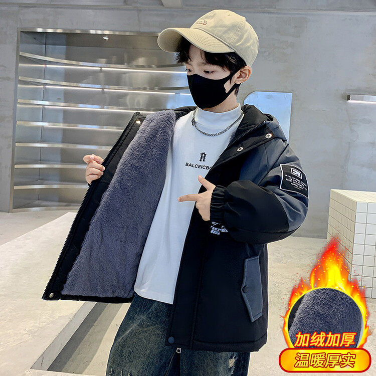 男孩冬季 中大儿童装 加绒兔毛派克服加厚棉衣 外套2025新款 男童冬装