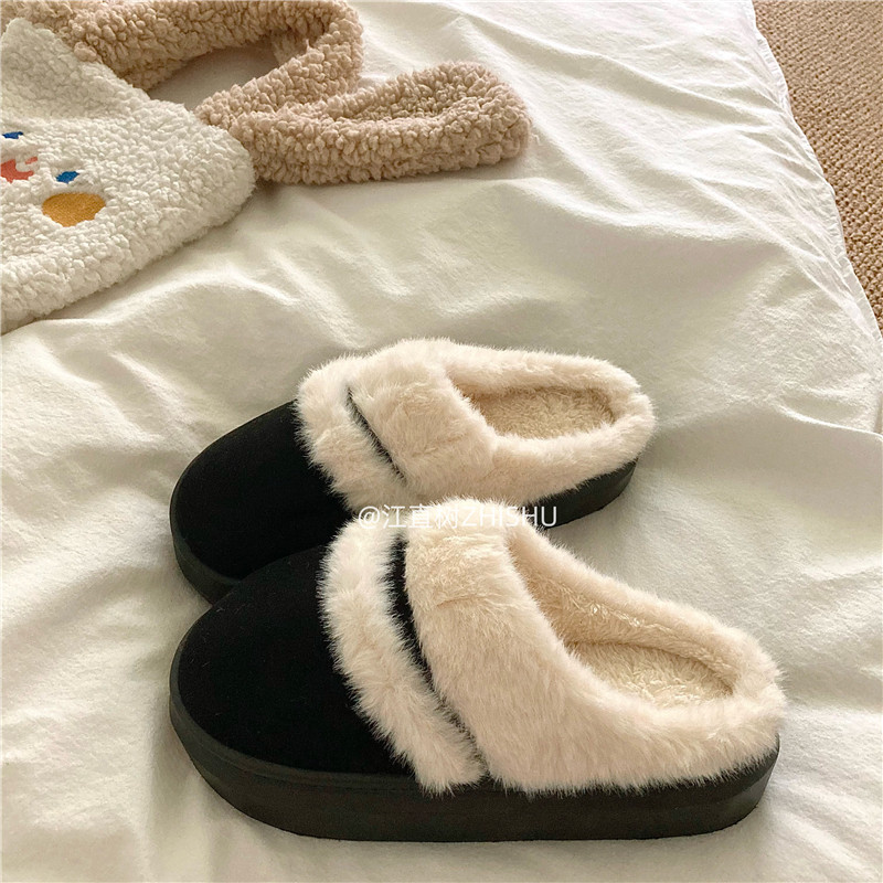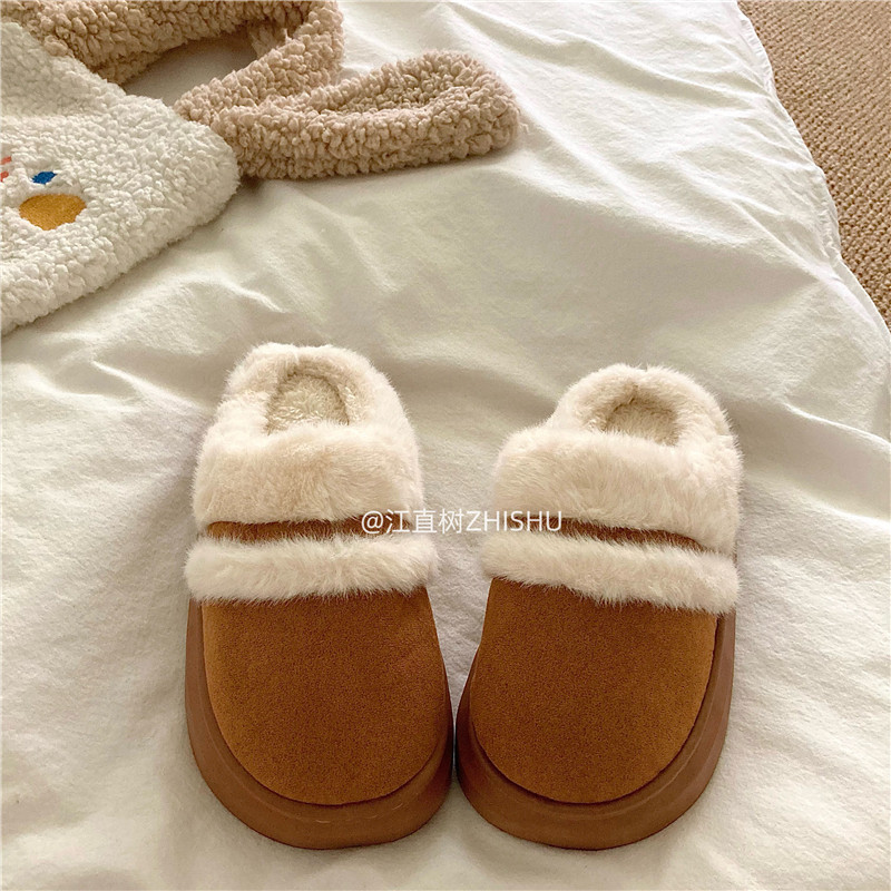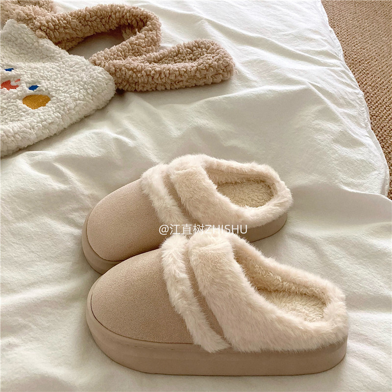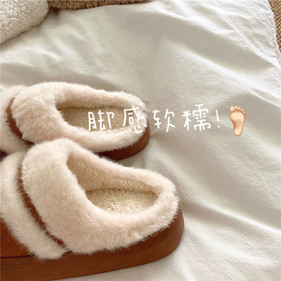 居家室内保暖加绒棉拖鞋 女冬季 软萌ins可爱毛毛拖鞋 私房小奶兔