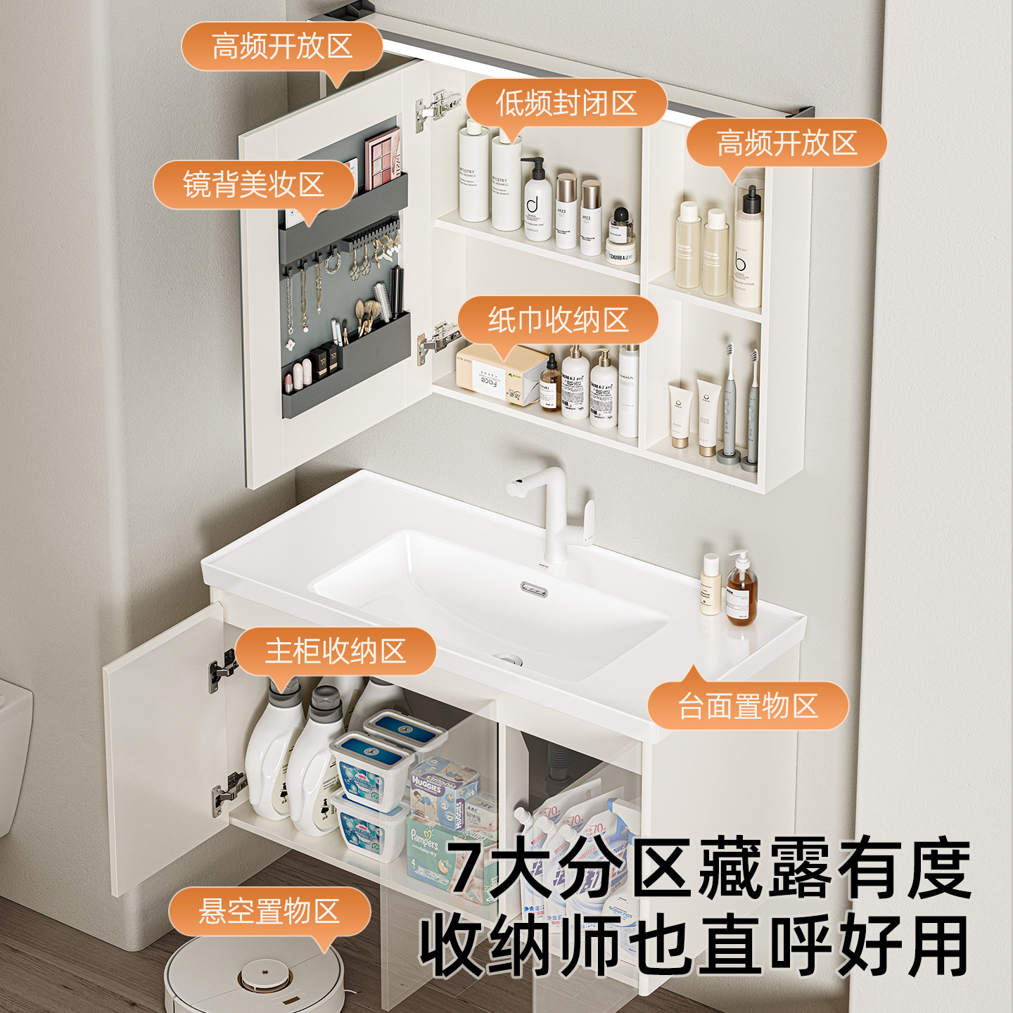 太空铝蜂窝浴室柜组合陶瓷一体盆侧边柜收纳洗漱台卫生间洗手盆柜