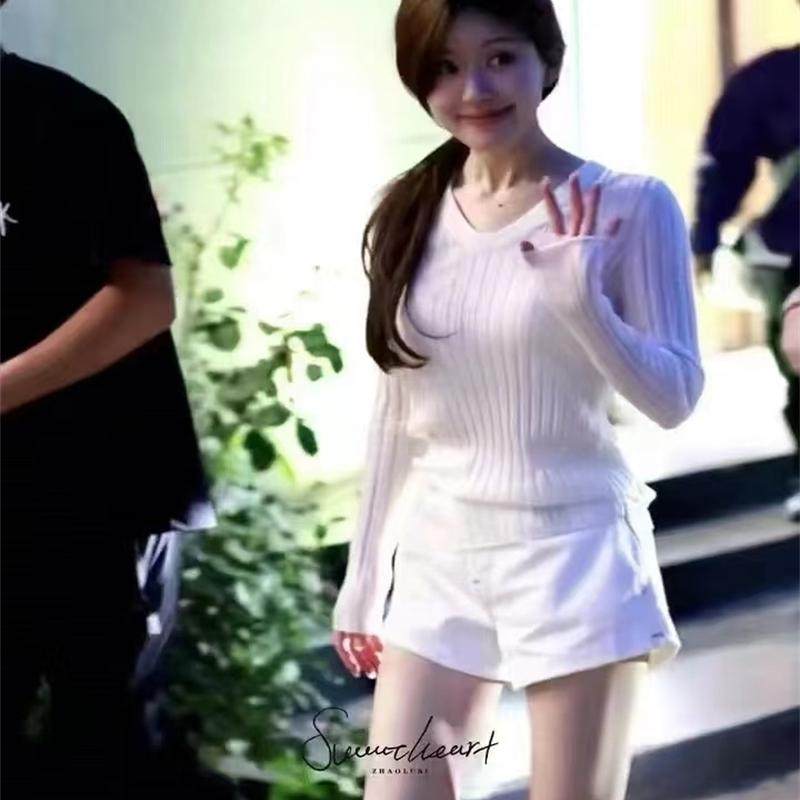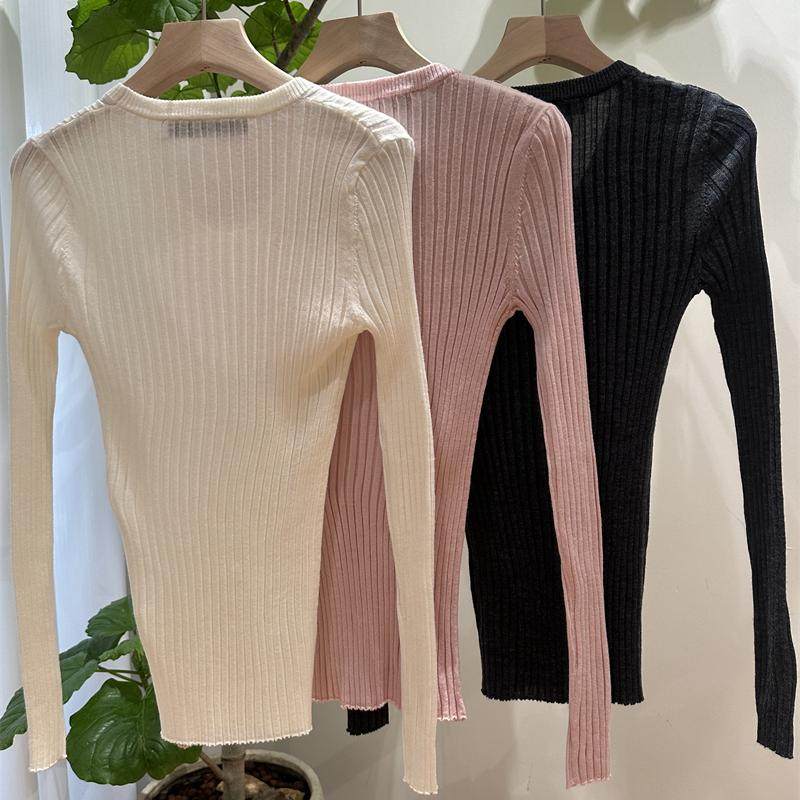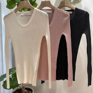 上衣春秋毛衣女士打底衫 秋冬2025新款 内搭针织衫 紧身v领长袖 修身